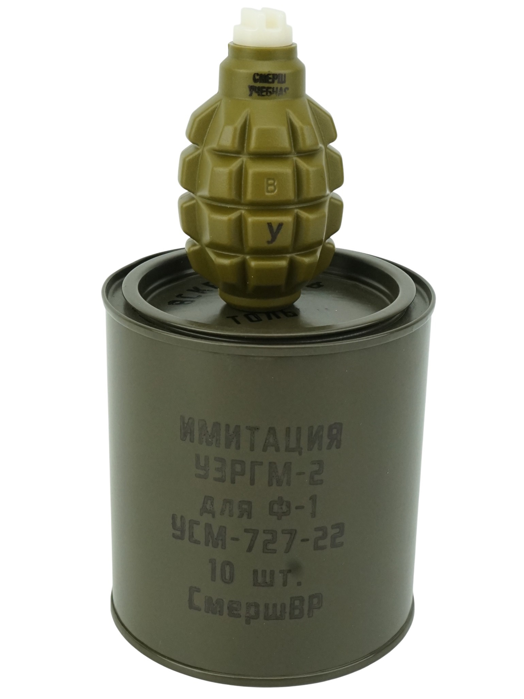 Граната учебно-имитационная пиротехническая Ф-1(У) является одной из наиболее узнаваемых и популярных советских (российских) наступательных гранат, применяется при проведении военно-спортивных игр и обучению навыкам обращения с гранатами, с целью имитации применения гранаты в действии, обеспечивает сильный хлопок и высокую плотность осыпи наполнителем.