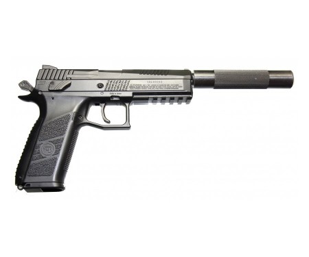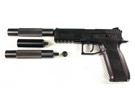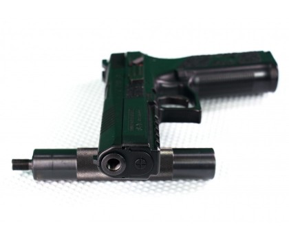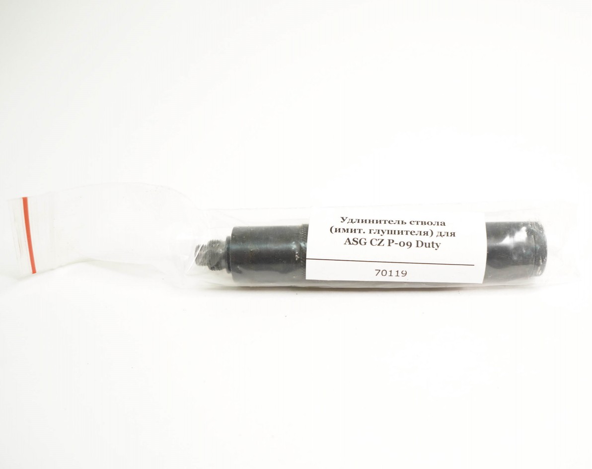 Удлинитель ствола (имитация глушителя) для пневматического пистолета ASG CZ P-09 Duty (пулевой с blowback). В комплект входит имитатор дульного среза для крепления резьбы удлинителя ствола.