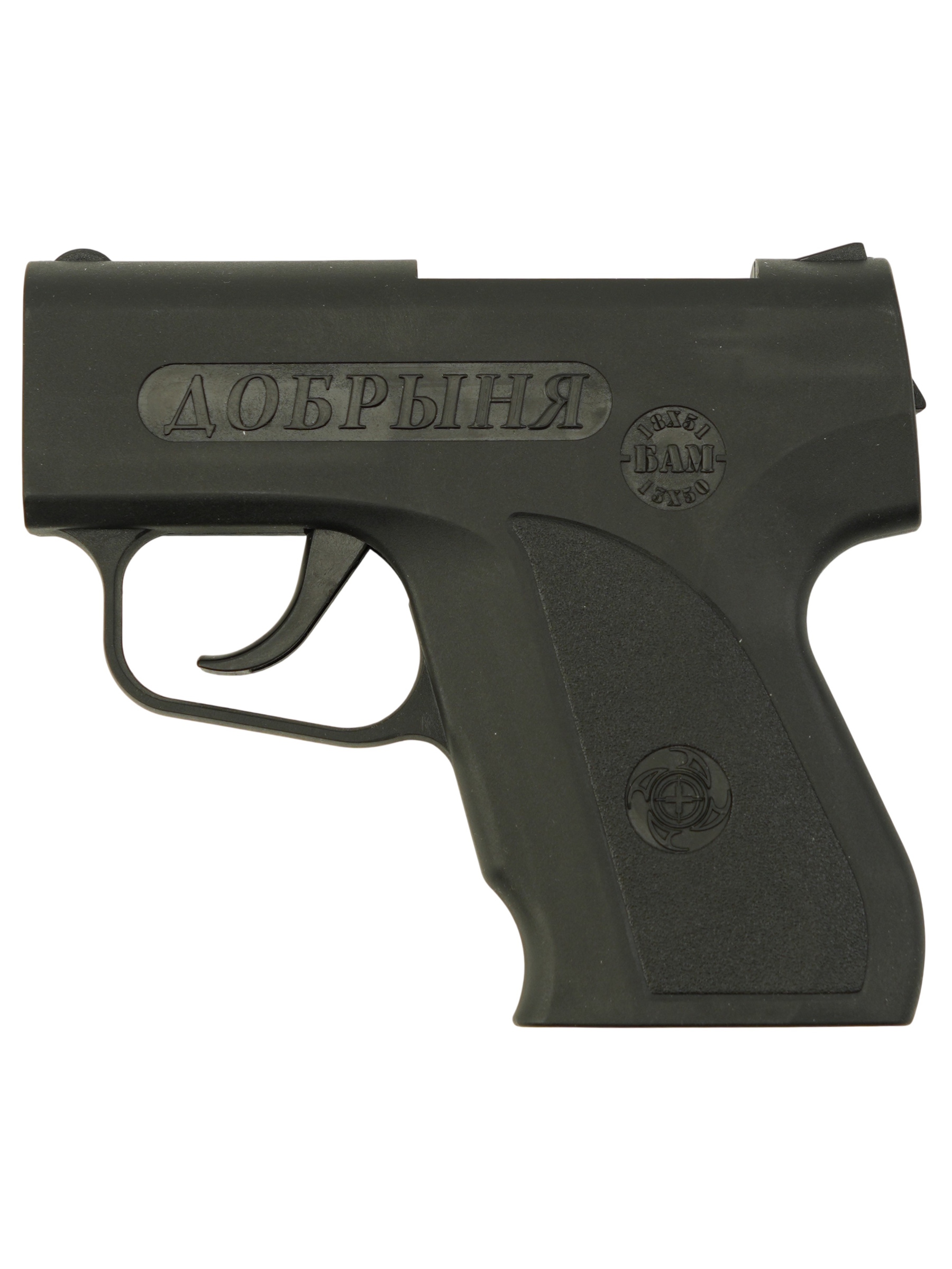 Корпус пистолета Добрыня выполнен из пластика повышенной прочности, что обеспечивает ему долгий срок службы. При работе с устройством необходимо соблюдать меры предосторожности – в частности, после каждого выстрела протирать ствол, так как на нем остаются следы едкого вещества из баллончика.