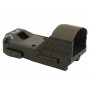 Прицельной маркой здесь является красная точка 3 МОА, ее яркость настраивается с использованием цифрового кнопочного переключателя с учетом уровня освещения. Отстройка от параллакса отсутствует, для ввода поправок имеются два винта регулировок, ключ для введения поправок идет в комплекте. За счет широкого поля зрения стрелок может прицеливаться двумя глазами.