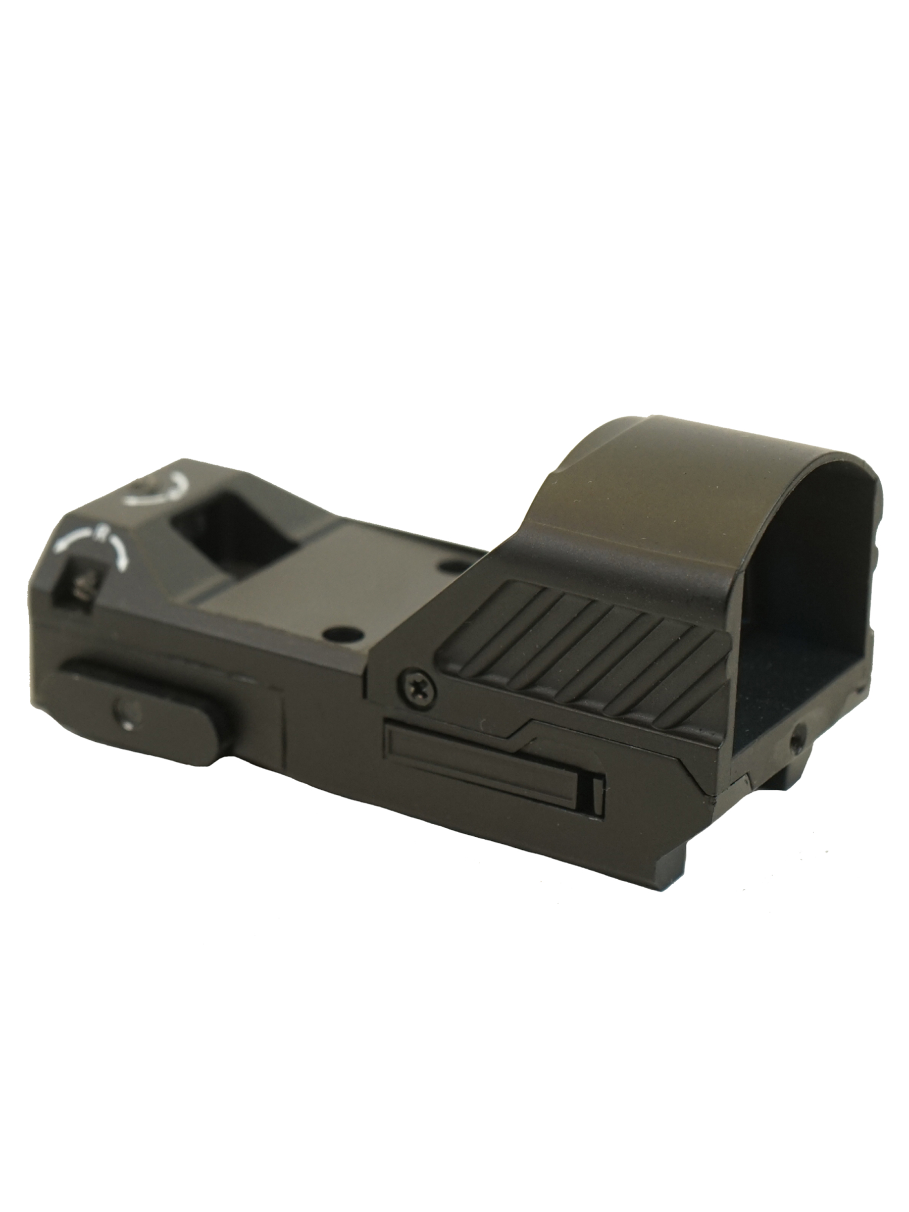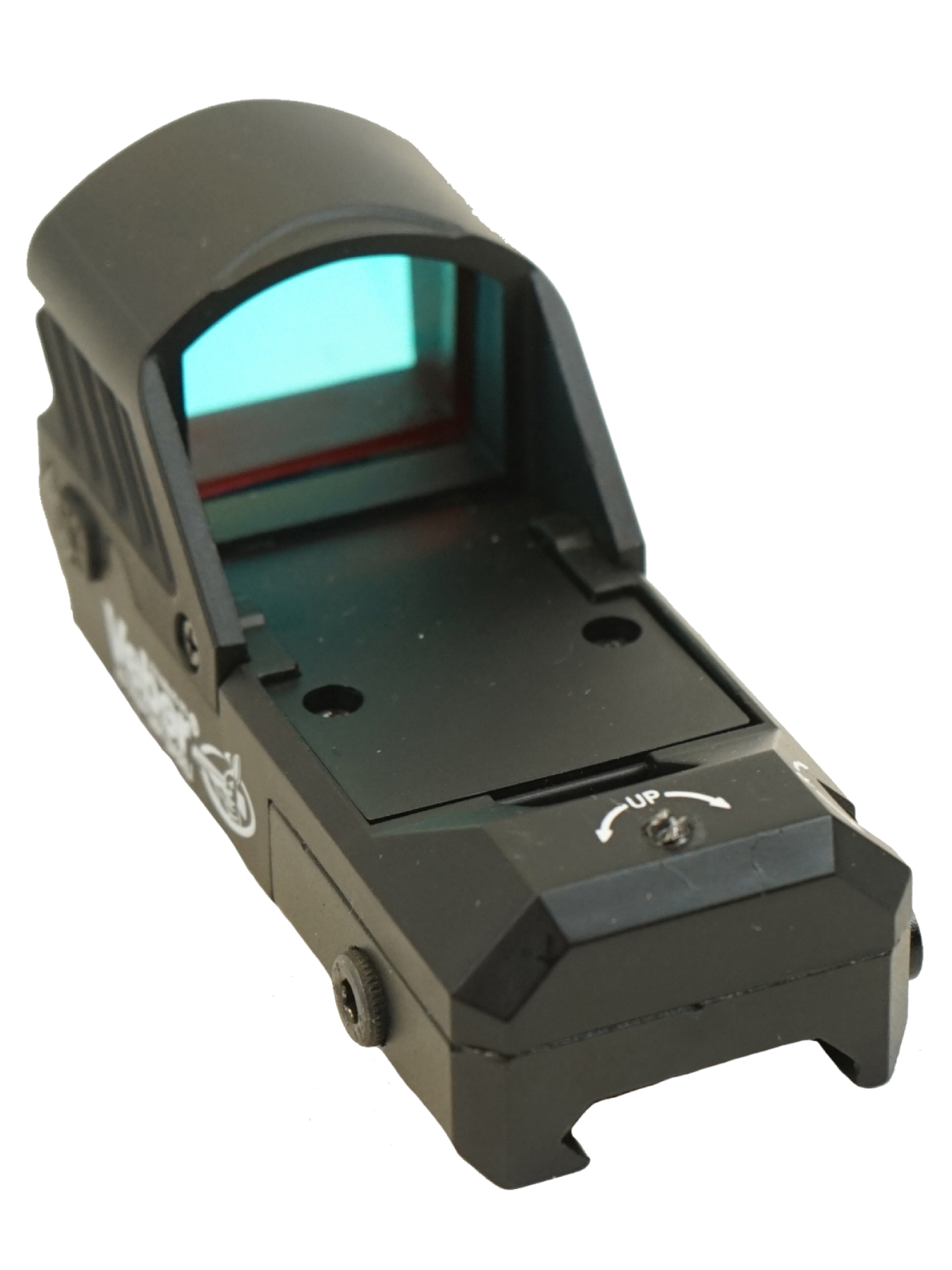 Корпус прицела изготовлен из полимерного материала, направляющие на планку Вивера металлические. Крышка отсека для батарейки резиновая, и выполняет роль амортизатора. Изделие отличается компактностью и небольшим весом – длина корпуса 8,6 см, вес 0,06 кг. Вместе с прицелом поставляются ключ ввода поправок, батарейка, ткань для оптики и инструкция пользователя.