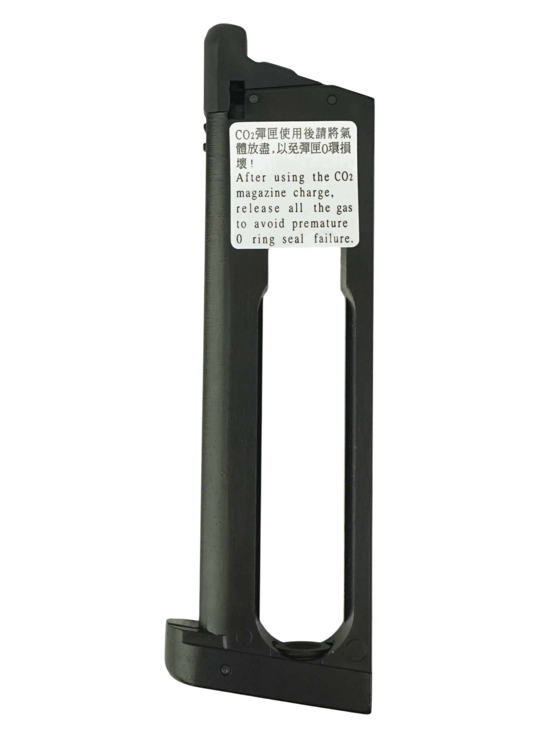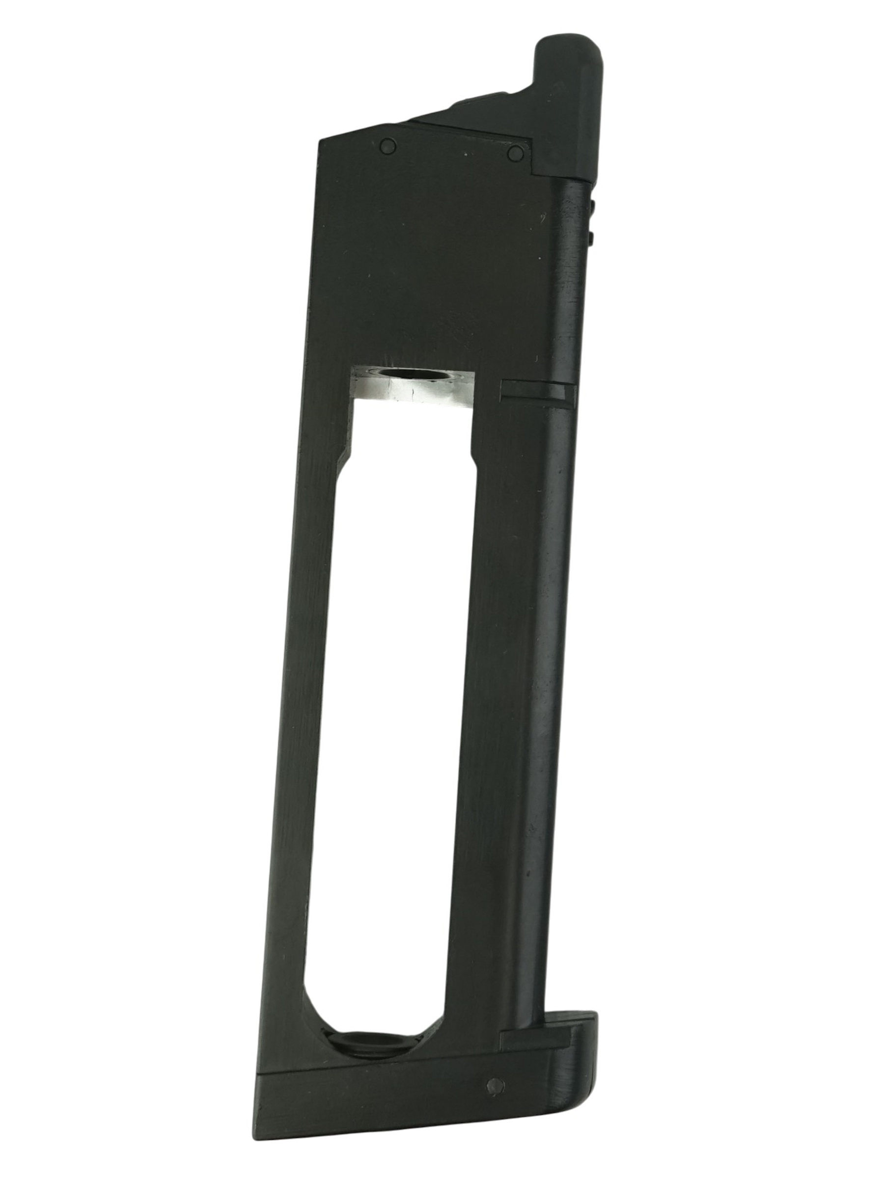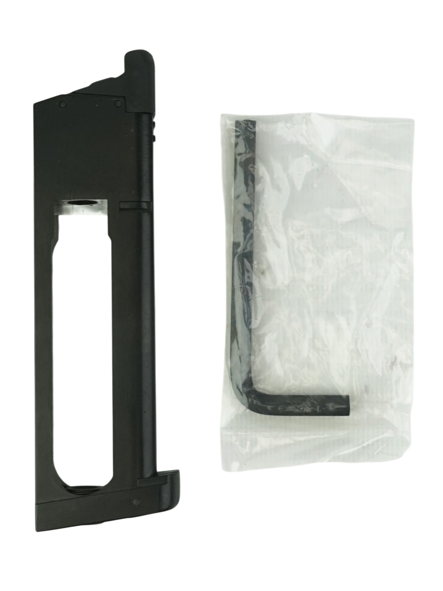 Запасной магазин для пневматического пистолета KP-07 Colt M1911 M.E.U. - полноразмерный, с отсеком для заряжания баллончиком CO2. Обойма вмещает 17 шариков, позволяет повысить темп стрельбы для перезарядки газобаллонного KJW KP-07.
