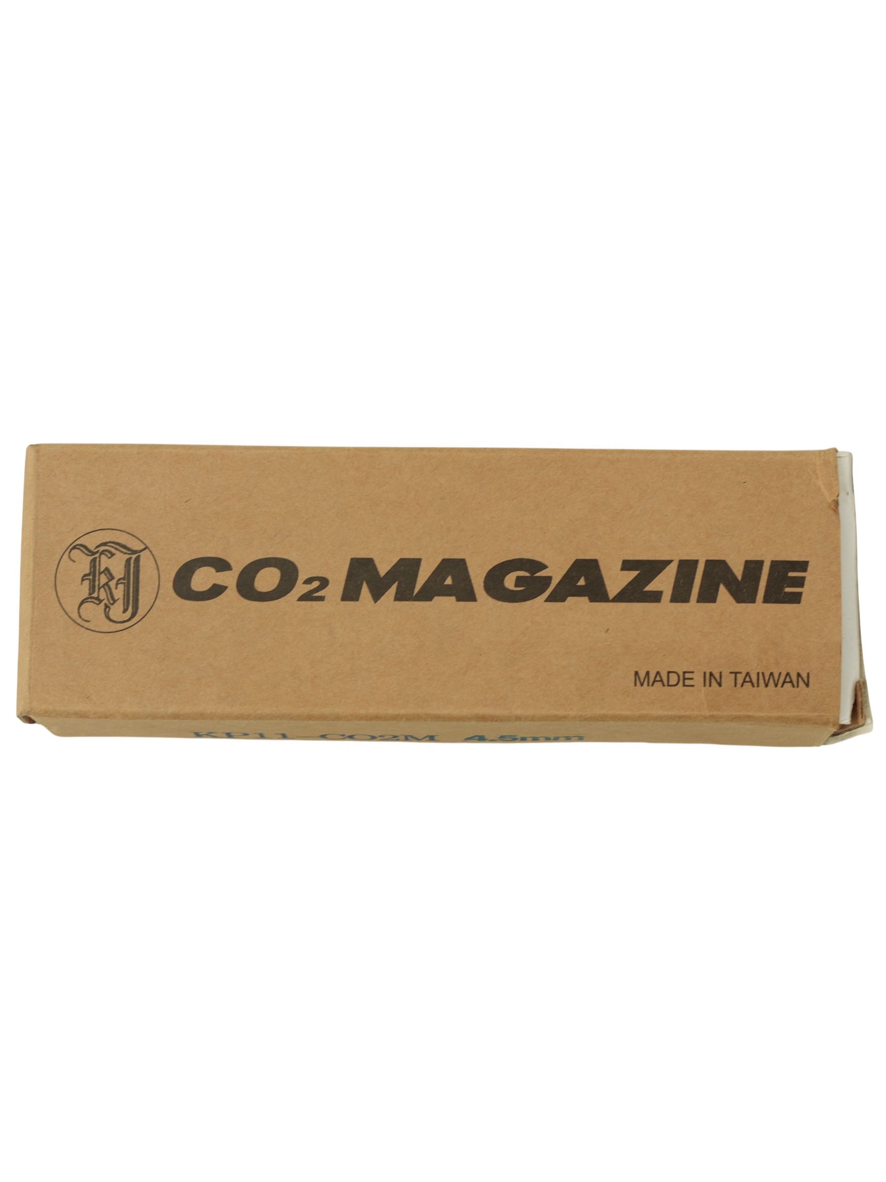 Запасной магазин для пневматического пистолета KP-11 Colt Hi-Capa - полноразмерный, с отсеком для заряжания баллончиком CO2. Обойма вмещает 17 шариков, позволяет повысить темп стрельбы для перезарядки газобаллонного KJW KP-11.