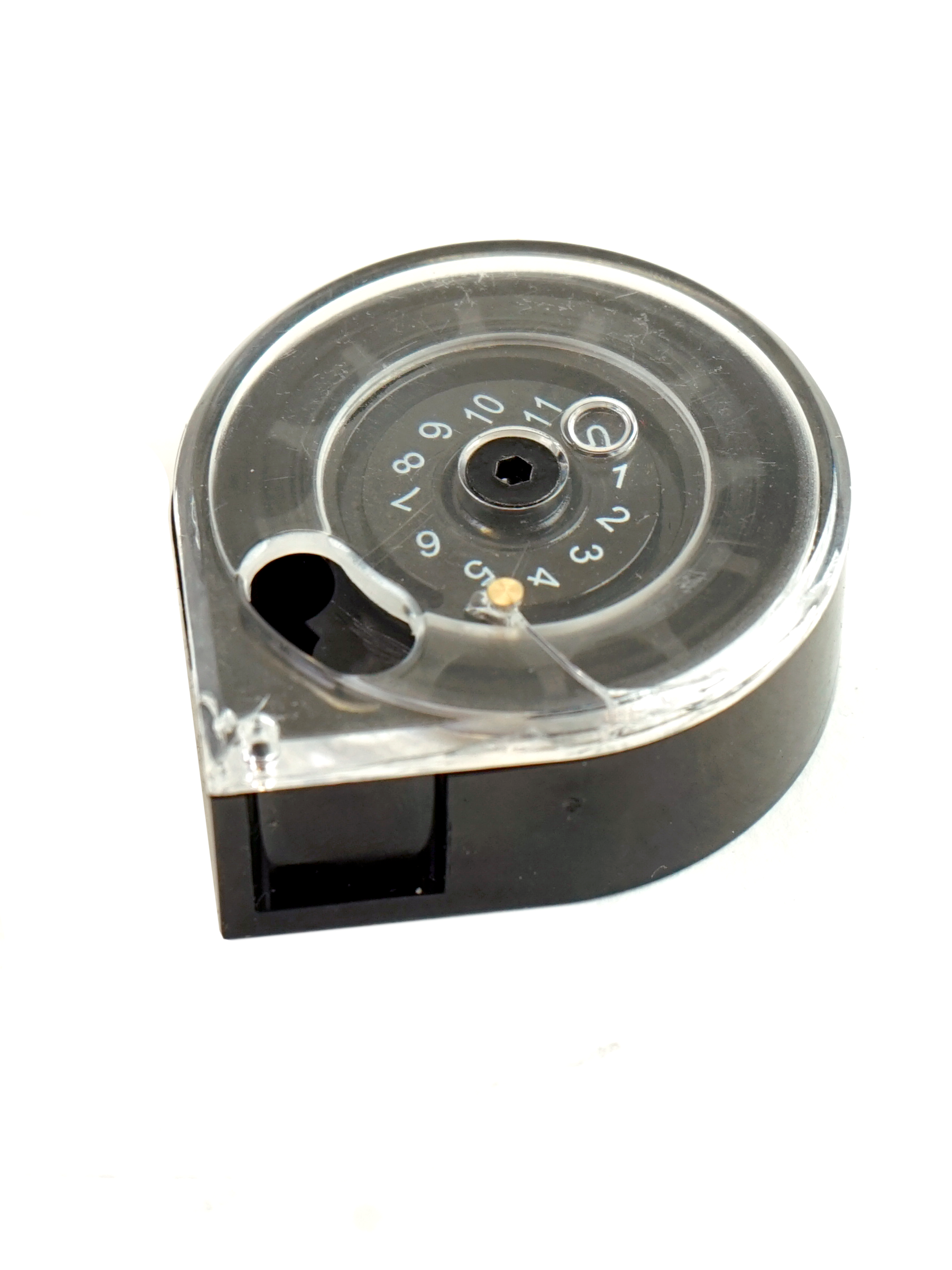 Автоматический запасной магазин барабанного типа формата Марадер для пневматических PCP-винтовок. Предназначен для заряжания пулями, калибра 5,5 мм, вместимость составляет 10 пуль.