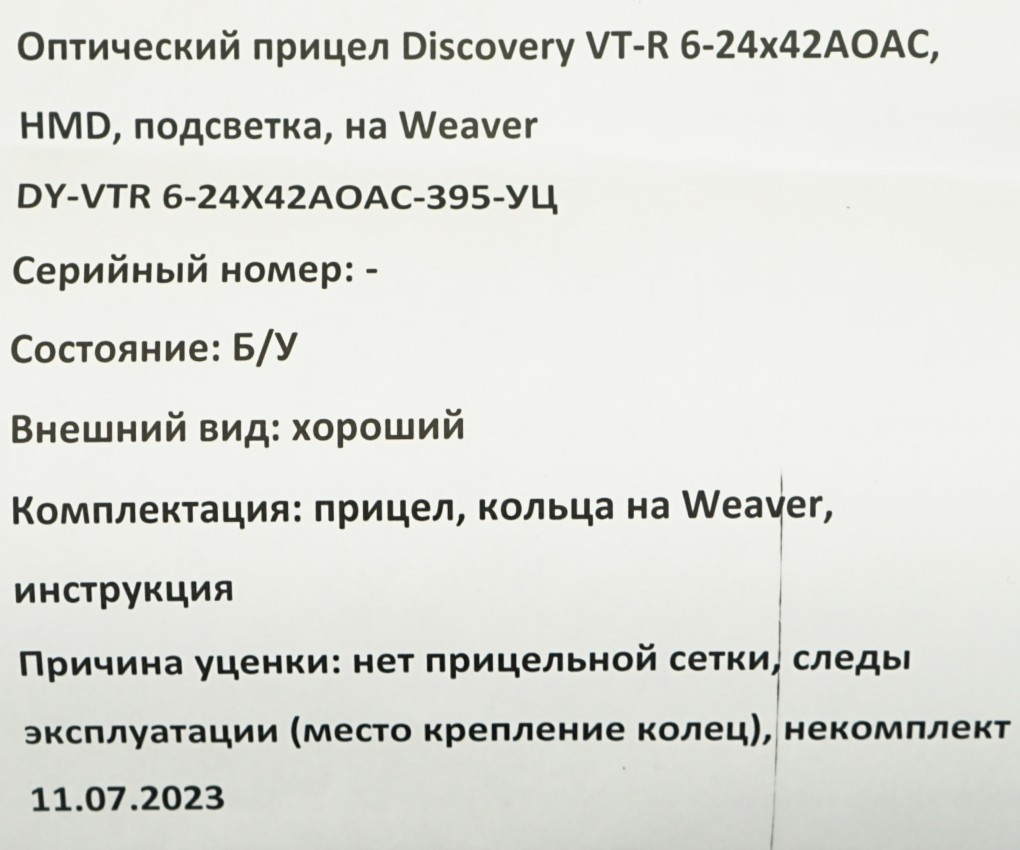 Оптический прицел Discovery VT-R 6-24x42AOAC, HMD, подсветка, на Weaver. Возврат/обмен в течении 14 дней!