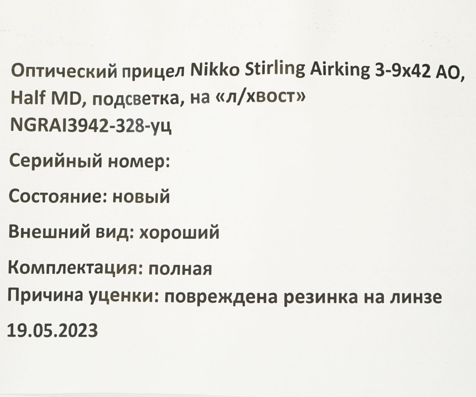 Оптический прицел Nikko Stirling Airking 3-9x42 AO, Half MD, подсветка, на «л/хвост». Возврат/обмен в течении 14 дней!