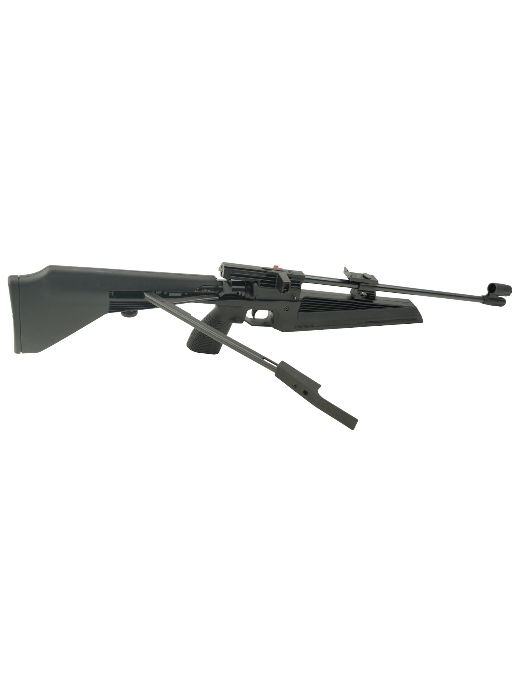 Материал изготовления ложе и приклада винтовки – пластик, ствол с внутренними нарезами стальной. Приклад регулируется по длине. Присутствует автоматического типа предохранитель, помимо целика с мушкой имеется планка для установки оптики. Весит винтовка 2,1 кг, длина 77,5 см. В комплекте – два магазина на 5 пуль каждый и инструкция.