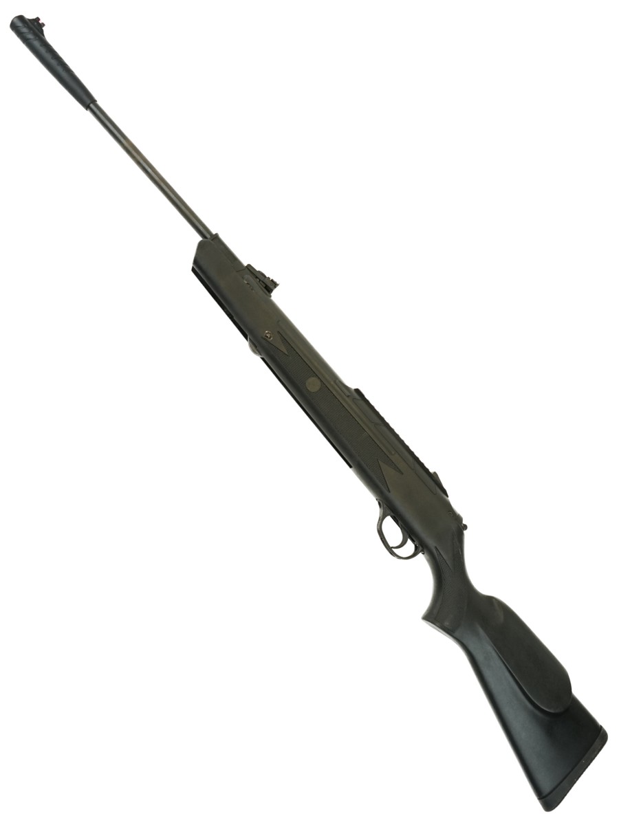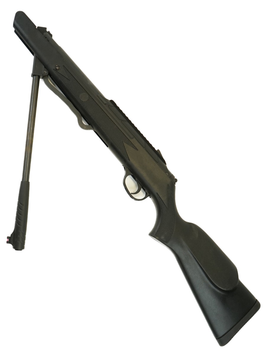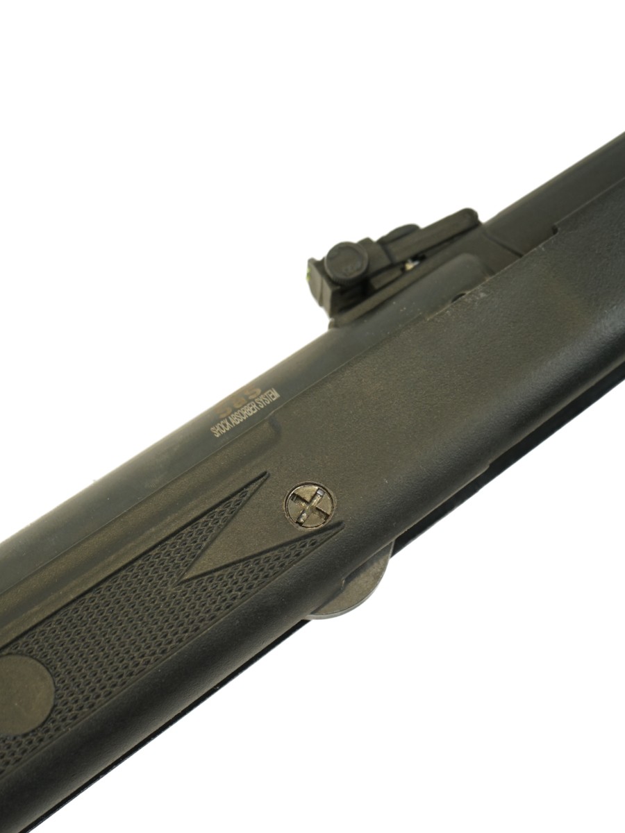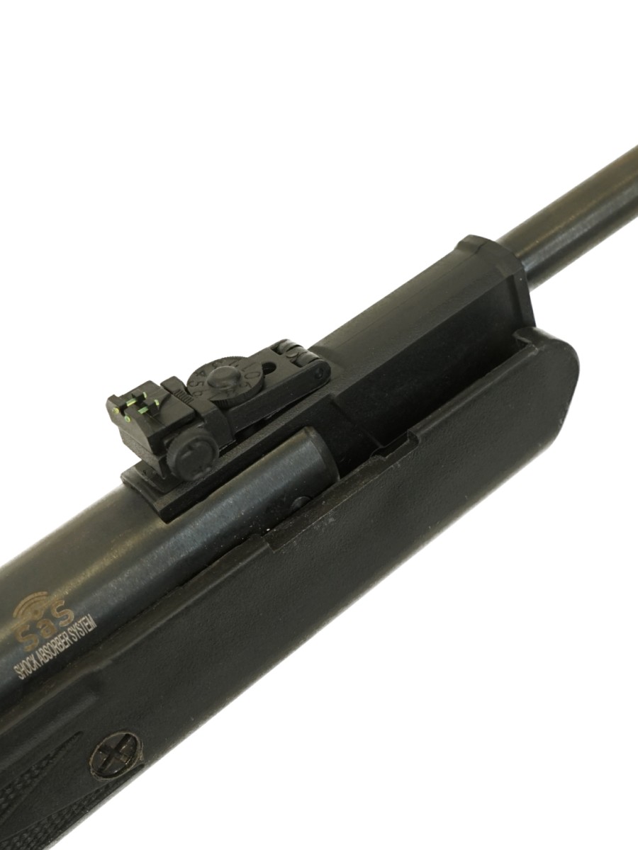 Чтобы взвести оружие, нужно «выбить» ствол из замка и снять флажковый предохранитель, находящийся в торце винтовки. Боеприпасы используются стандартные, пули для пневматики 4,5 мм.