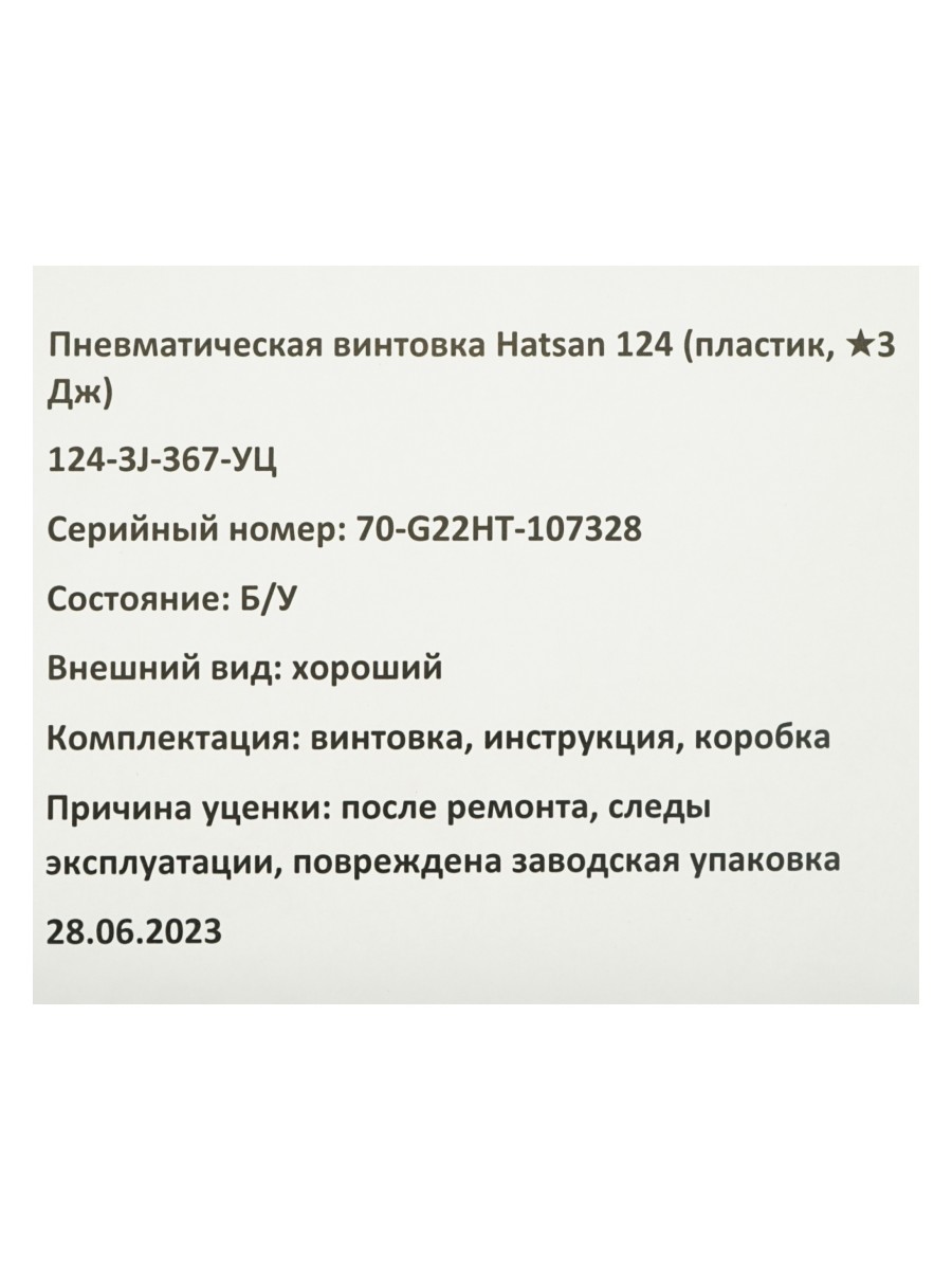 Пневматическая винтовка Hatsan 124 (пластик, ★3 Дж). Возврат/обмен в течении 14 дней!