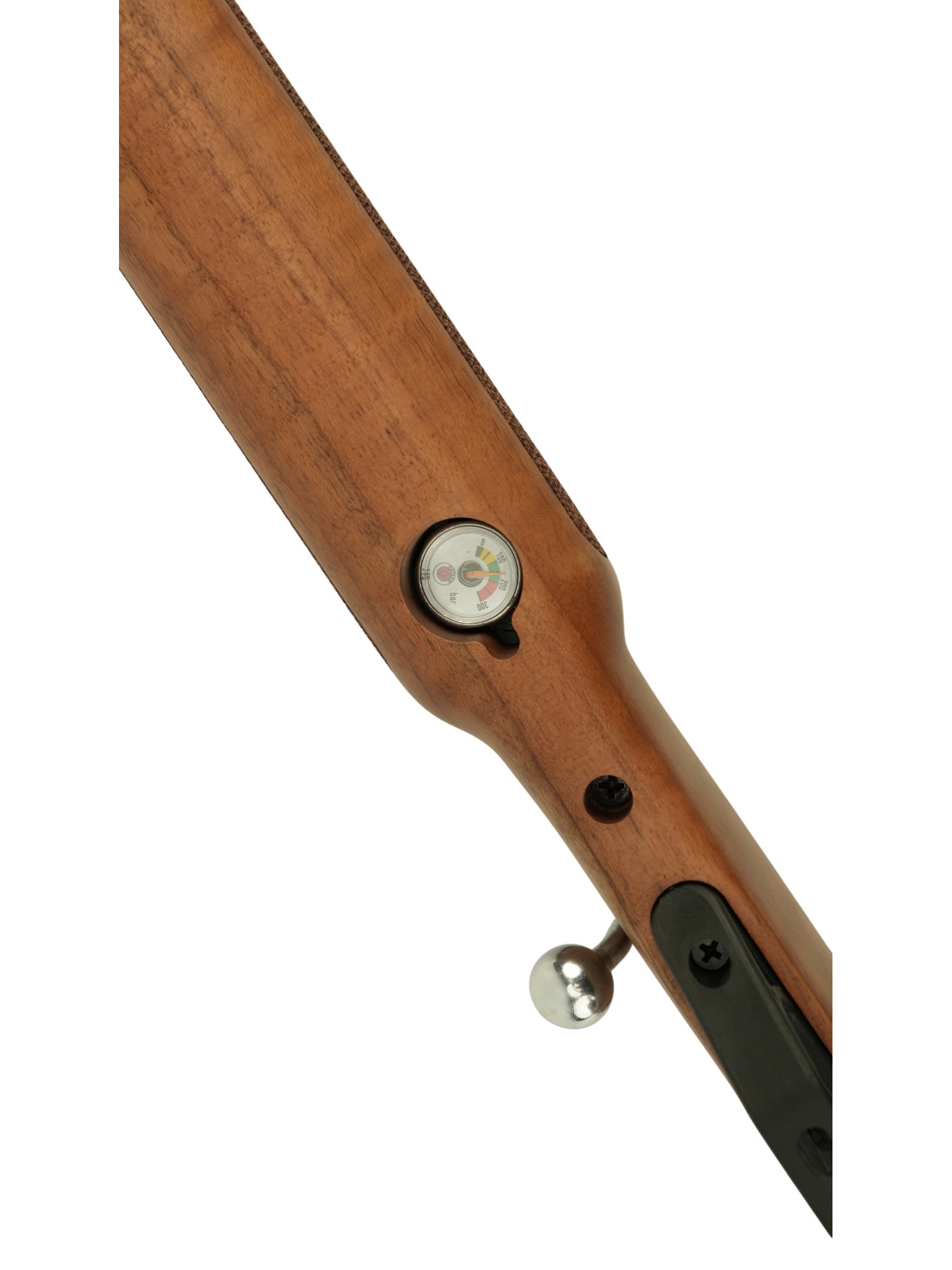 Пневматическая винтовка Hatsan Flash W (PCP) 6,35 мм – это РСР-модификация от популярного оружейного бренда, красивое, мощное оружие. Объем резервуара высокого давления составляет здесь 165 куб. см, давление 200 бар, полная его заправка обеспечивает произведение порядка 90 выстрелов. Материал резервуара – алюминий. Перезарядка осуществляется в ручном режиме с использованием бокового рычага. Уровень давления в резервуаре контролирует встроенный манометр.