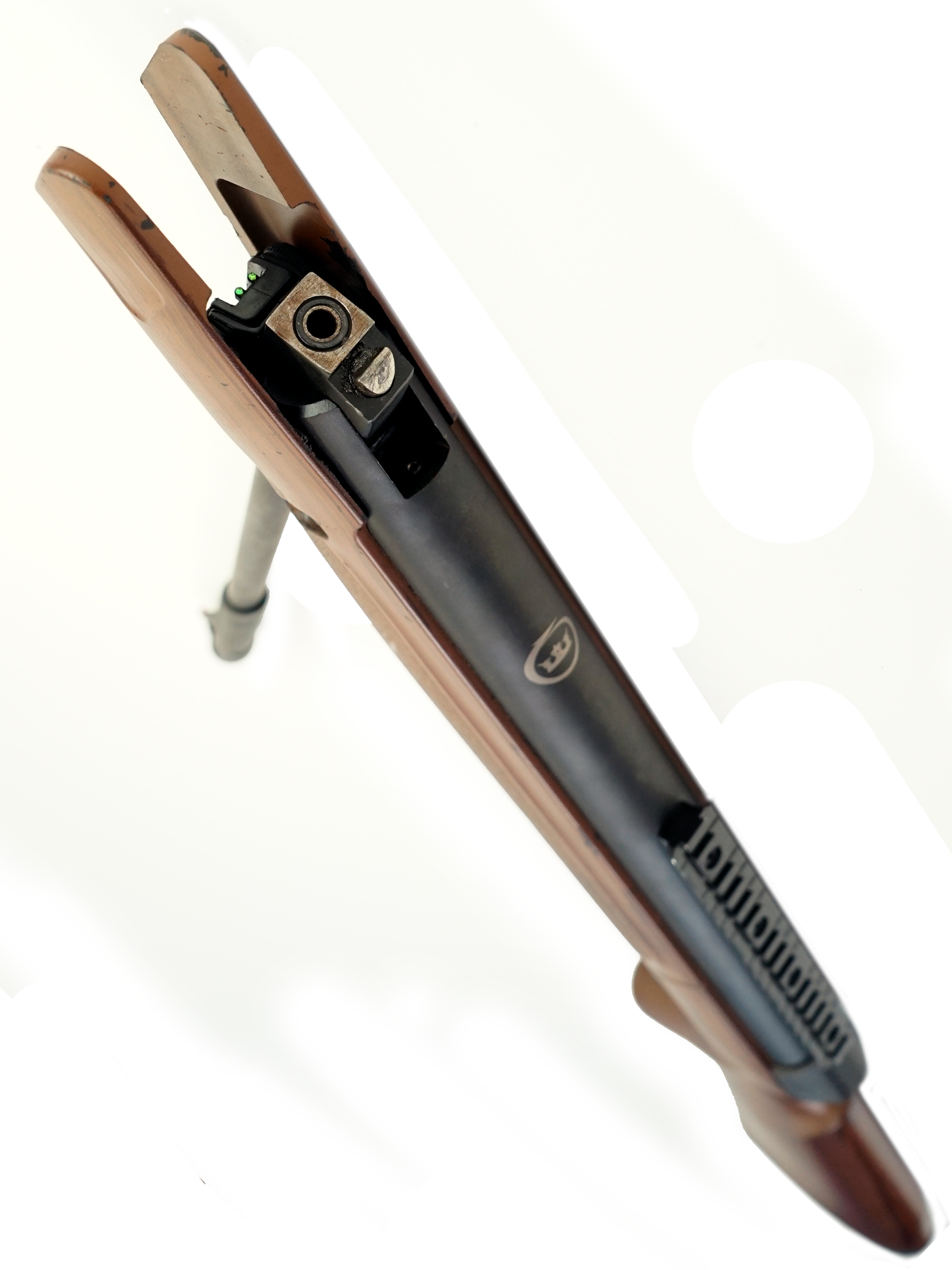 Особенностью модели является ее оснащение мушкой Тругло с оптоволоконными нитями и подвижным целиком, это позволяет вести стрельбу при плохой освещенности.