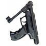 Пневматика Blow H-01 - это бюджетная модель и его стоимость соответствующая. Рукоятка у пистолета пластиковая, черного цвета, с особой противоскользящей поверхностью. Пули заряжаются по одной в ствол оружия. Масса пистолета мала, несмотря на его достаточно крупные габариты, таким образом есть стрельба из него точно не будет утомлять. Сильная пружина обеспечивает стартовую скорость пули не меньше 120 м/с, что неплохо для пистолета, в особенности если учесть что стрельба из данного оружия ведется лишь свинцовыми пулями, а не легкими шариками.