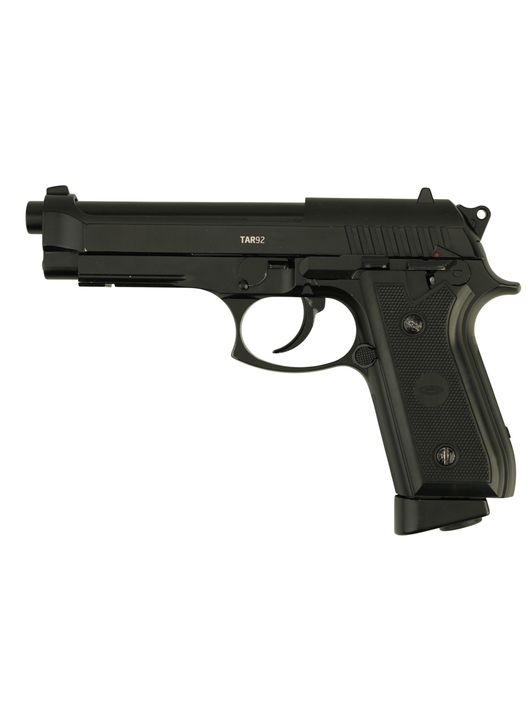 Пистолет пневматический Gletcher TAR92 - это отличная копия одного из популярнейших боевых пистолетов, знаменитой Беретты. По мнению большинства специалистов эта модель - лучшая пневматическая копия огнестрельного оригинала, поскольку сочетает в себе максимум достоинств, которые могут быть очень важны именно для развлекательной стрельбы. Качественный подвижный затвор пистолета оборудован функцией Blowback, поэтому стреляя вы будете ощущать отдачу, ведь затвор как у настоящего боевого оружия делает откат назад. Когда в магазине заканчиваются шарики, затвор оружия встает на специальную затворную задержку, что также добавляет этому пистолету сходства с огнестрельным оригиналом.