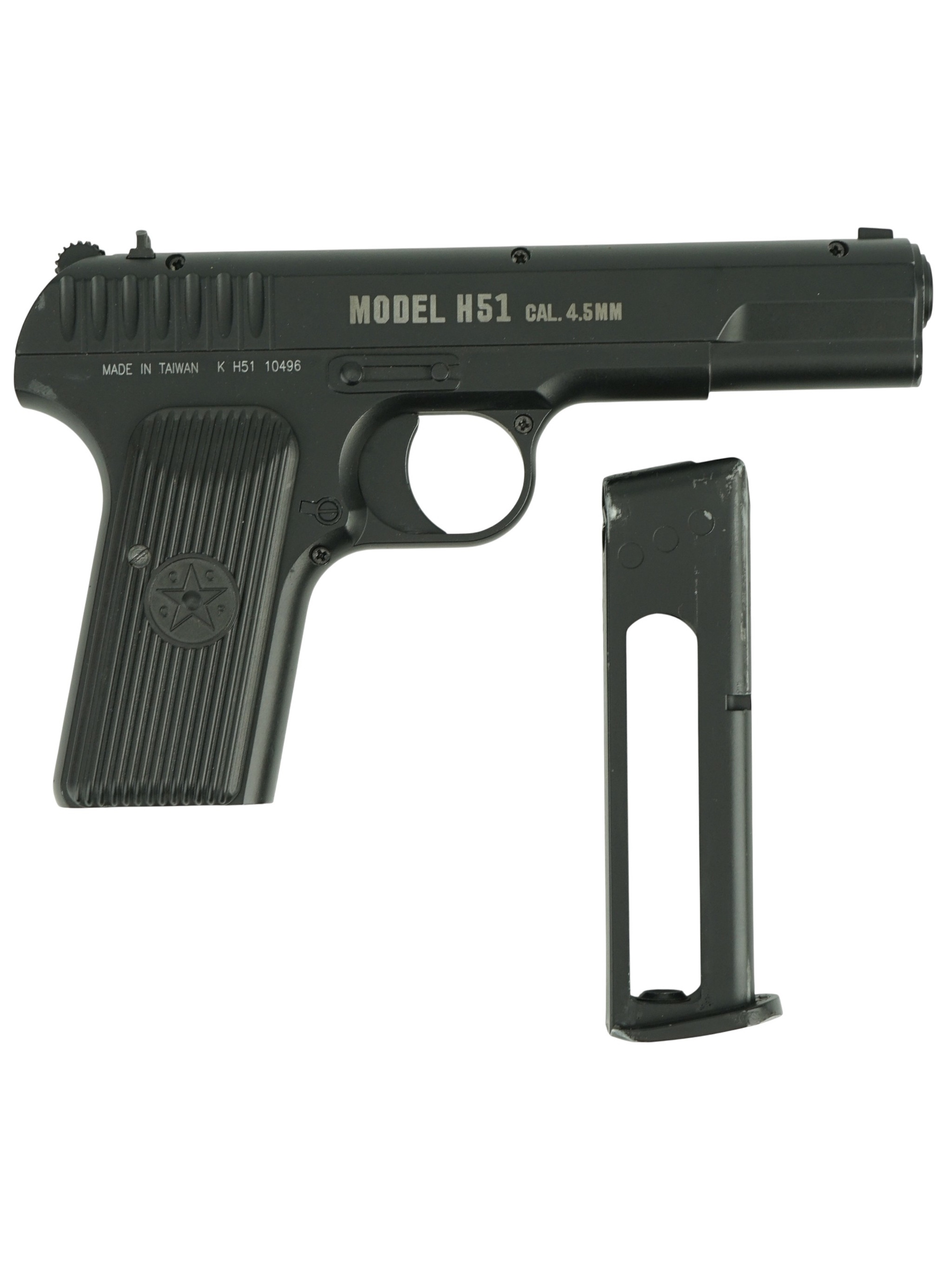 На рынке на данный момент присутствует ряд модификаций пневматического ТТ, но у пневматического пистолета Smersh H51 самая доступная цена. Пистолет конструктора Токарева был на вооружении приблизительно двадцать лет. В особенности известен как пистолет периода Второй Мировой войны, в связи с чем представляет огромный интерес для любителей оружия. Пневматический пистолет ТТ Smersh полностью копирует пистолет ТТ-33 военного и довоенного годов выпуска.