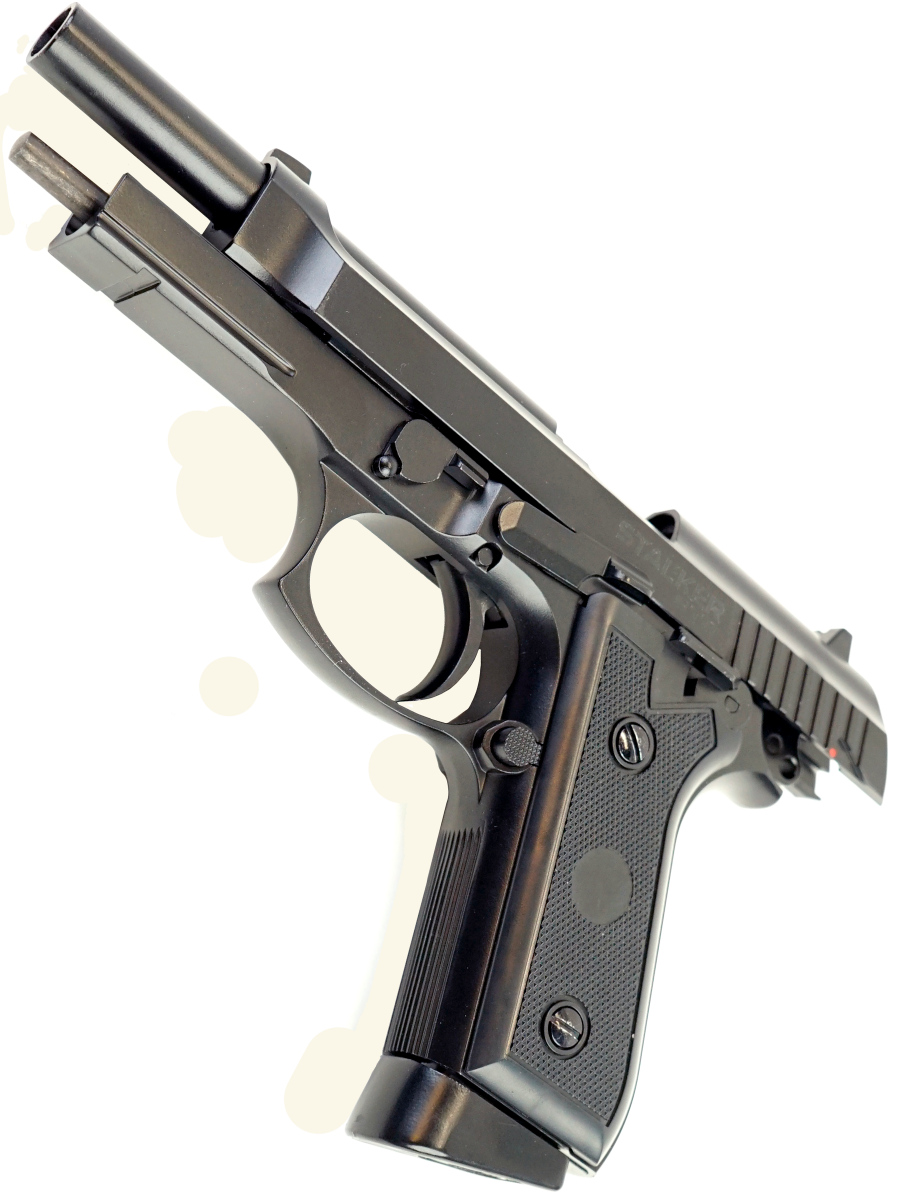 Пневматический пистолет Stalker STB представляет возможность вести огонь как одиночными выстрелами, так и в автоматическом режиме. Отличительной чертой этой модели от многих других является разборка/сборка аналогичная боевому пистолету.