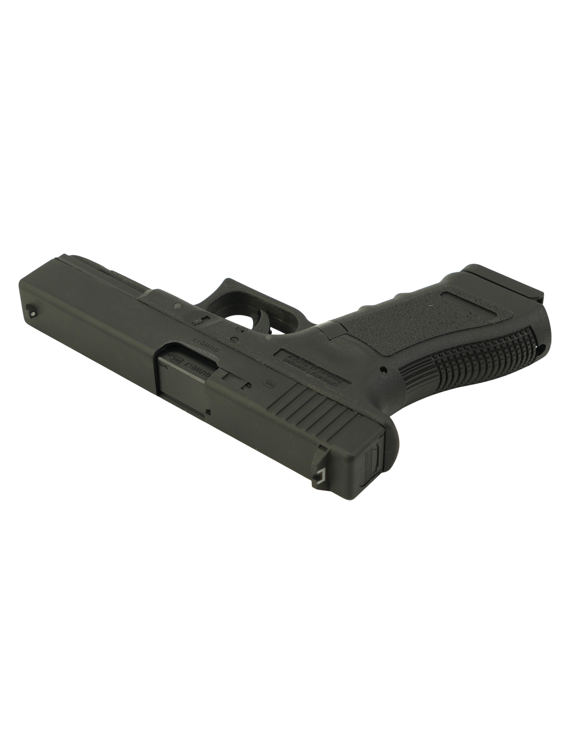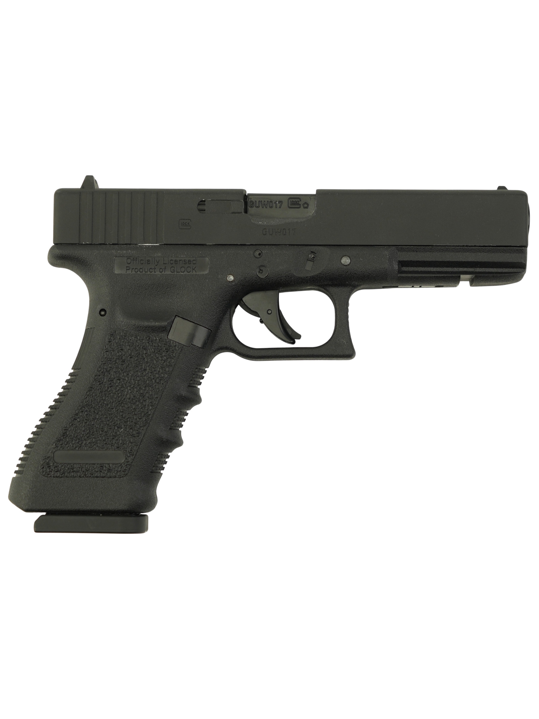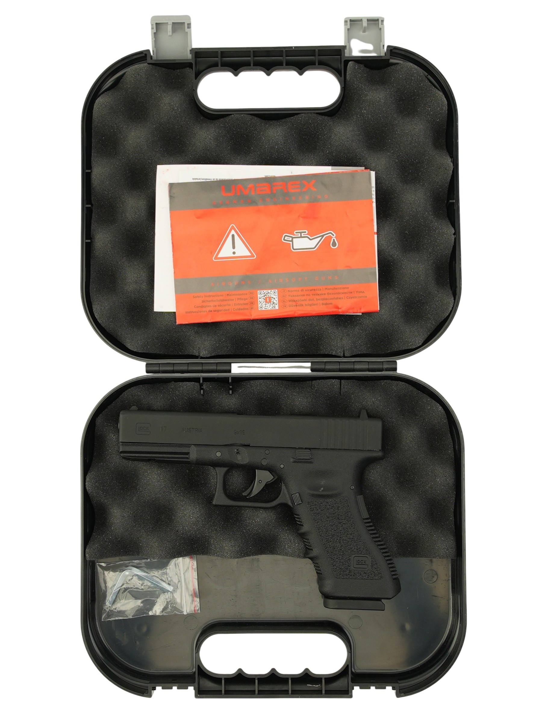 Пистолет Umarex Glock 17 (blowback, BB/pellet) имеет УСМ двойного действия, подвижный затвор. Изделие показывает хорошую скорость выстрела – 115 м/с. Модель гладкоствольная, свободная продажа ее возможна благодаря невысокой дульной энергии, не превышающей 3 Дж.