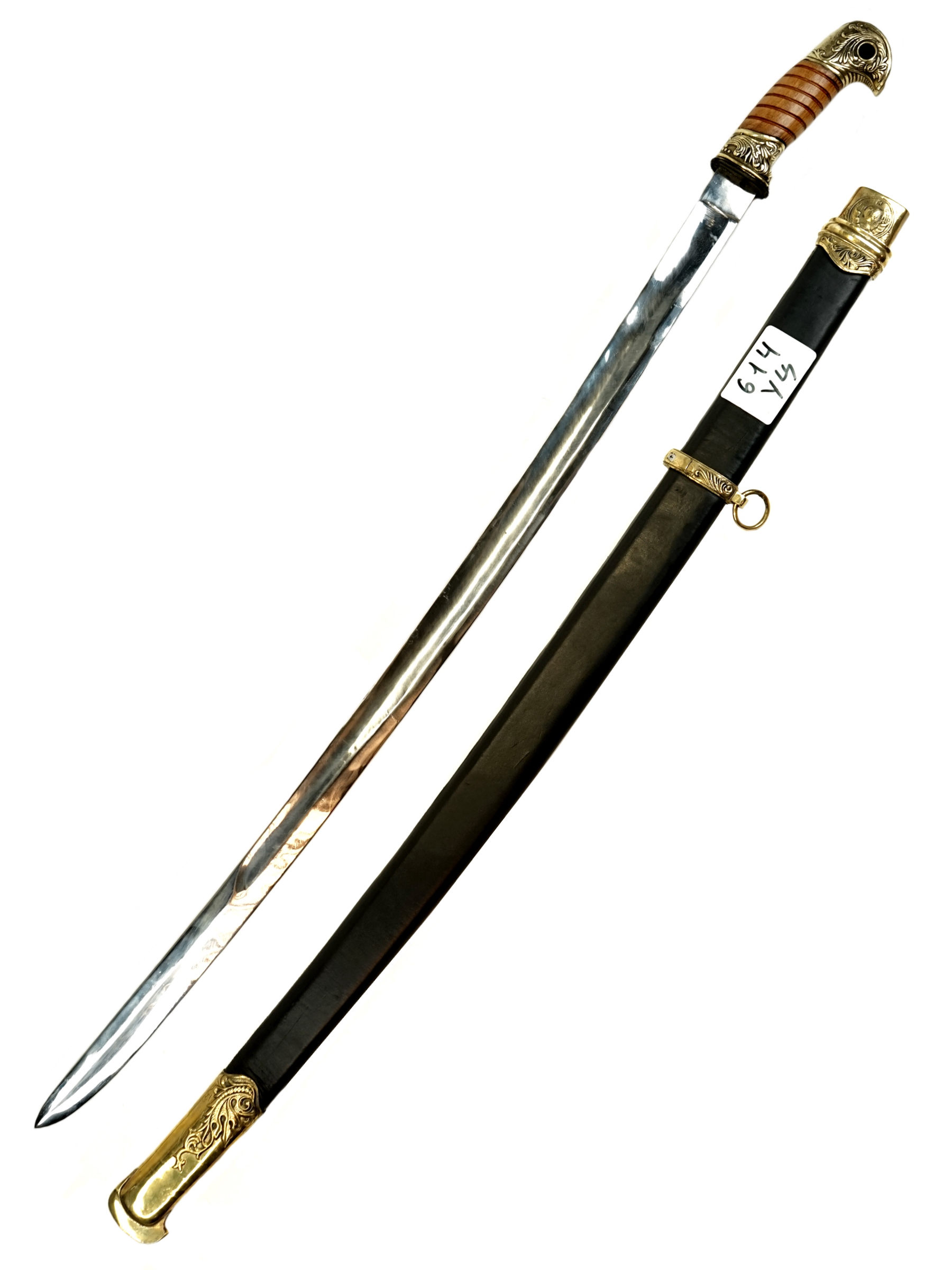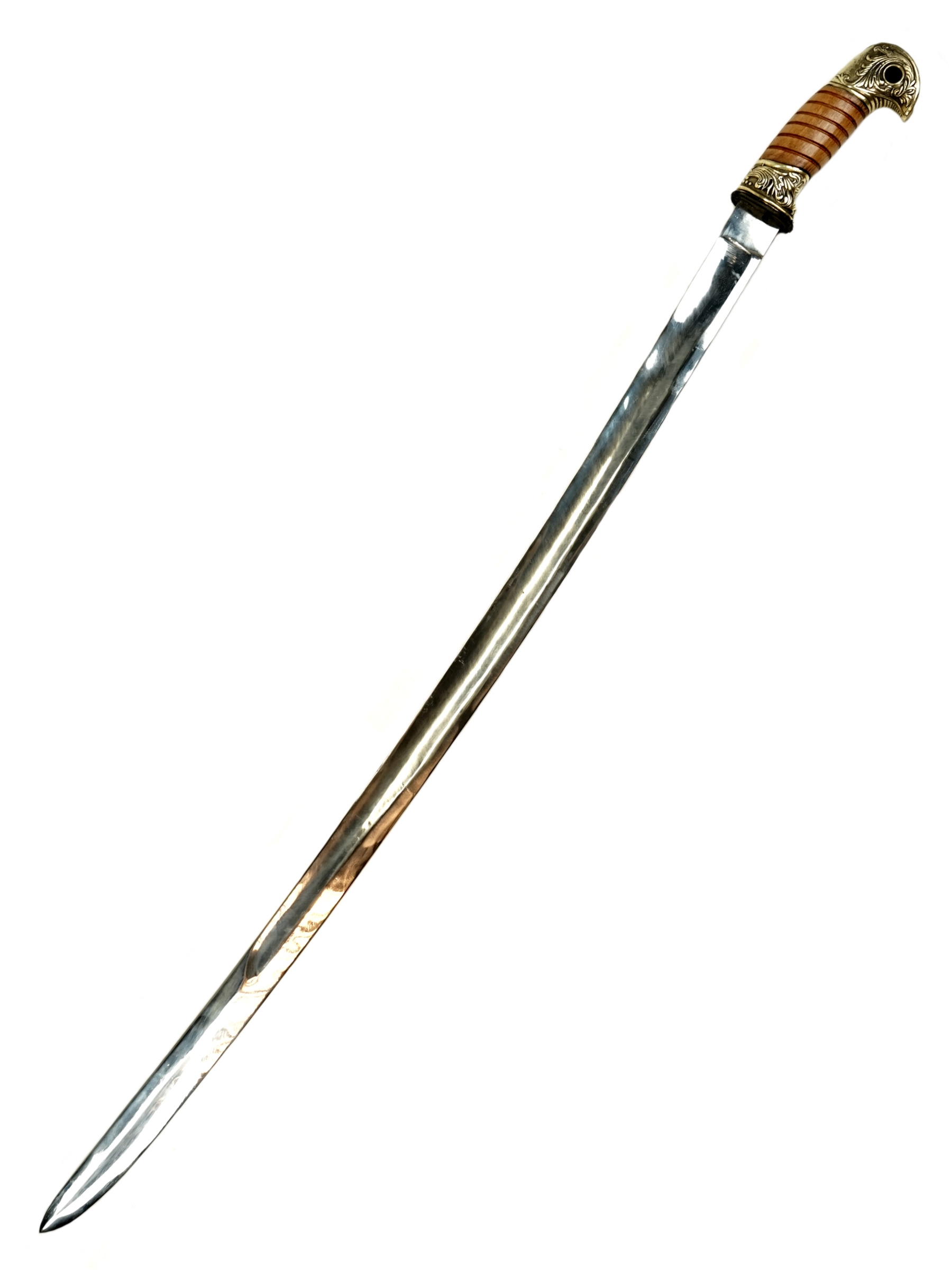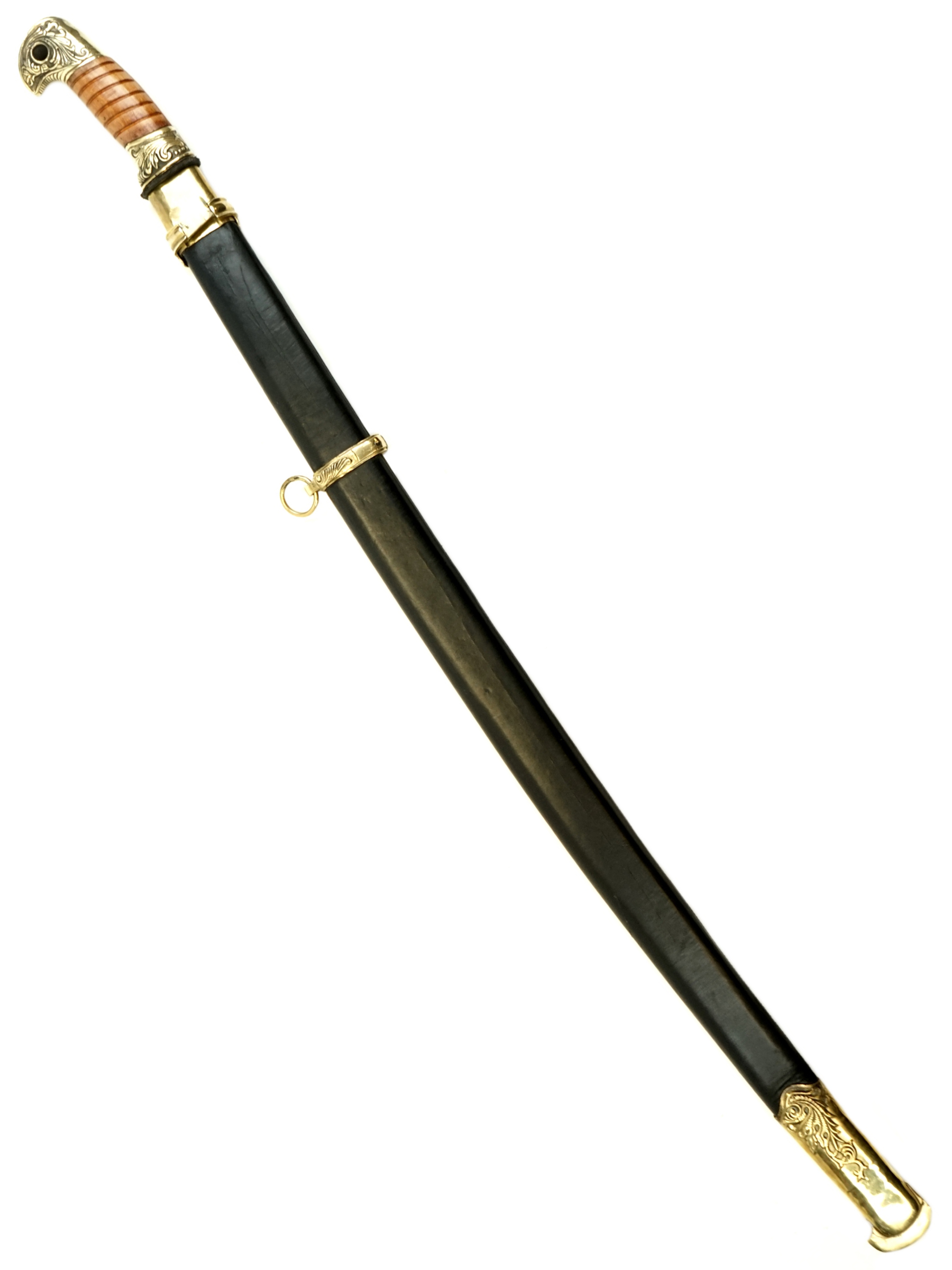 Шашки кавалерийские для командного и начальствующего состава обр. 1927 г. Клинок стальной, незначительной кривизны, однолезвийный, с одним широким долом. Боевой конец двулезвийный.