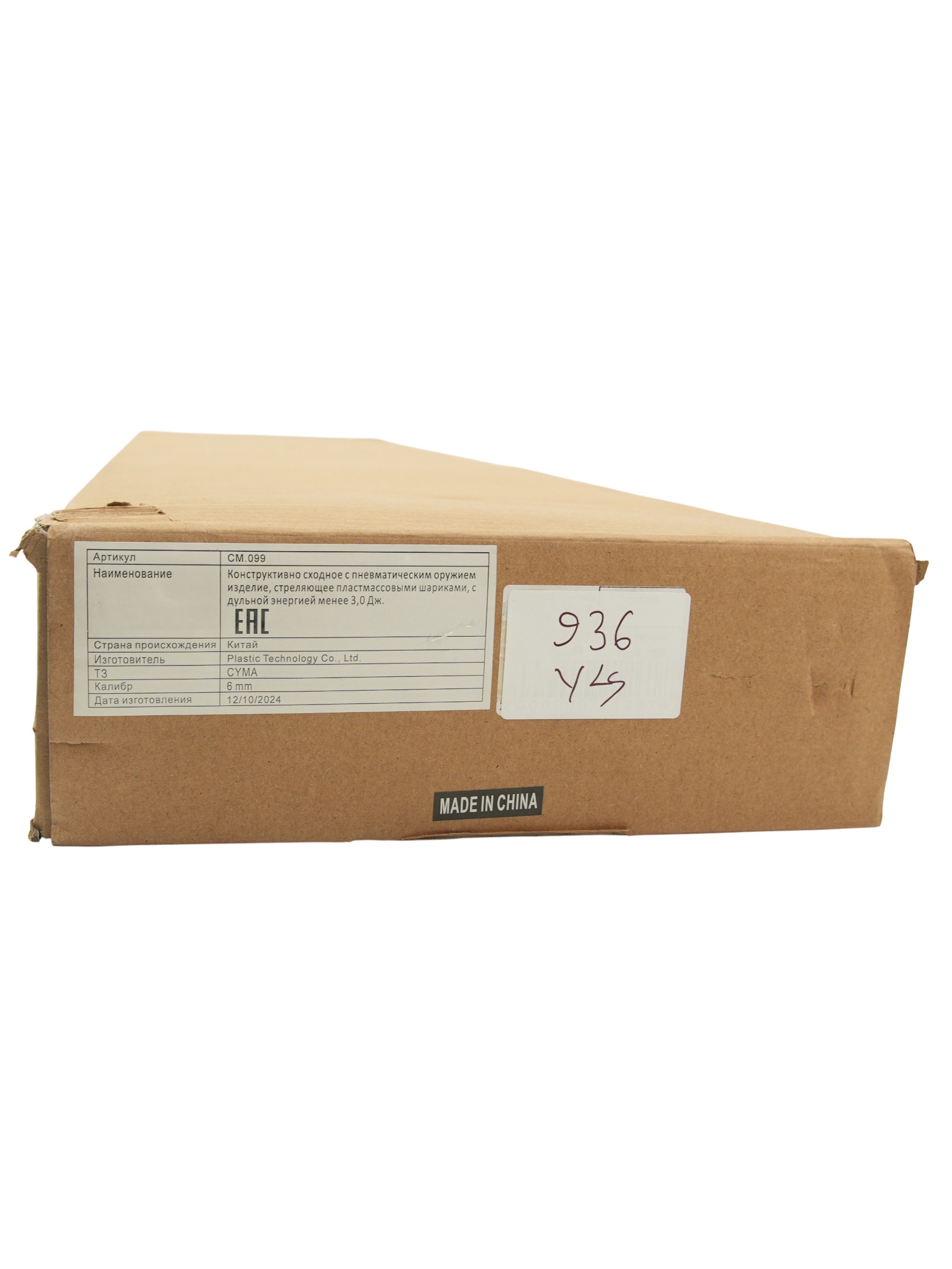 Корпус винтовки выполнен из прочного ABS-пластика и алюминиевого сплава, обеспечивая надежность и реалистичный вес (2900 г). Длина винтовки составляет 940 мм, а длина ствола - 455 мм.