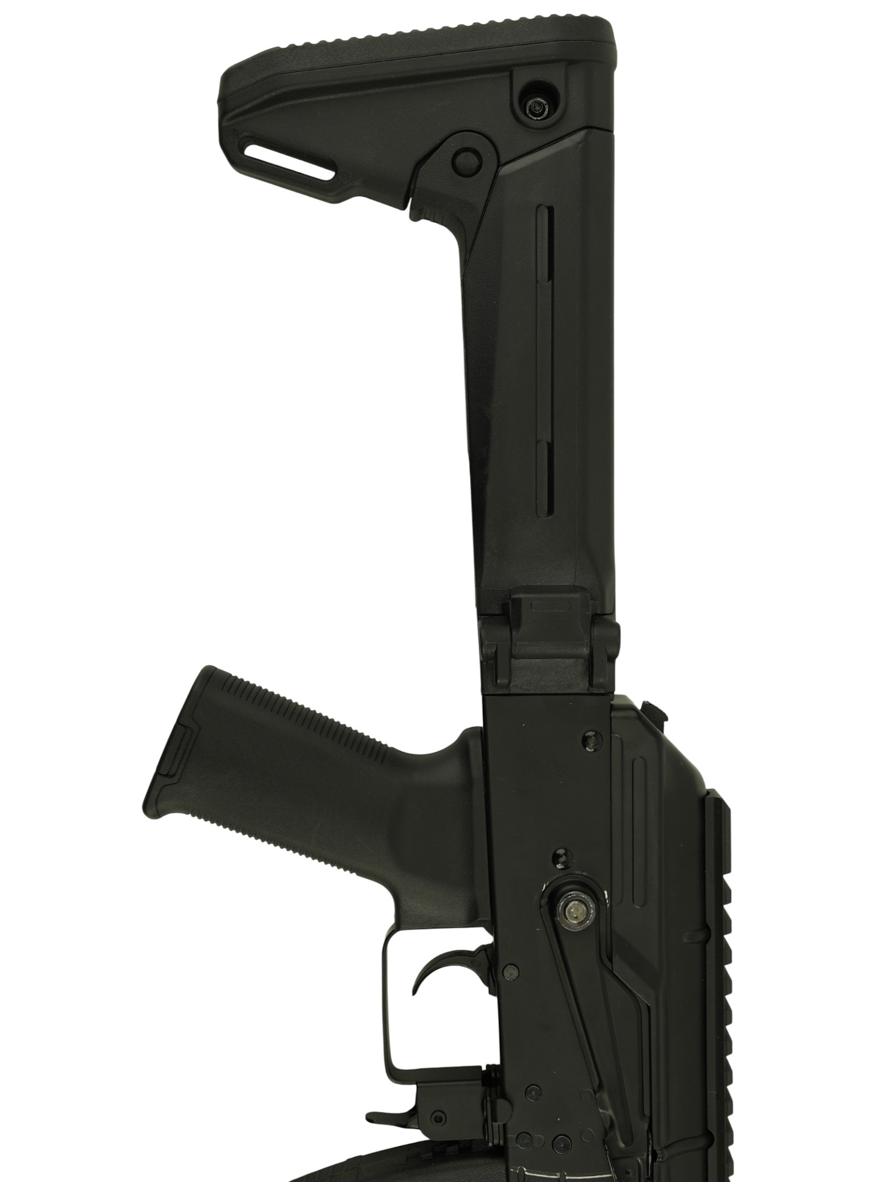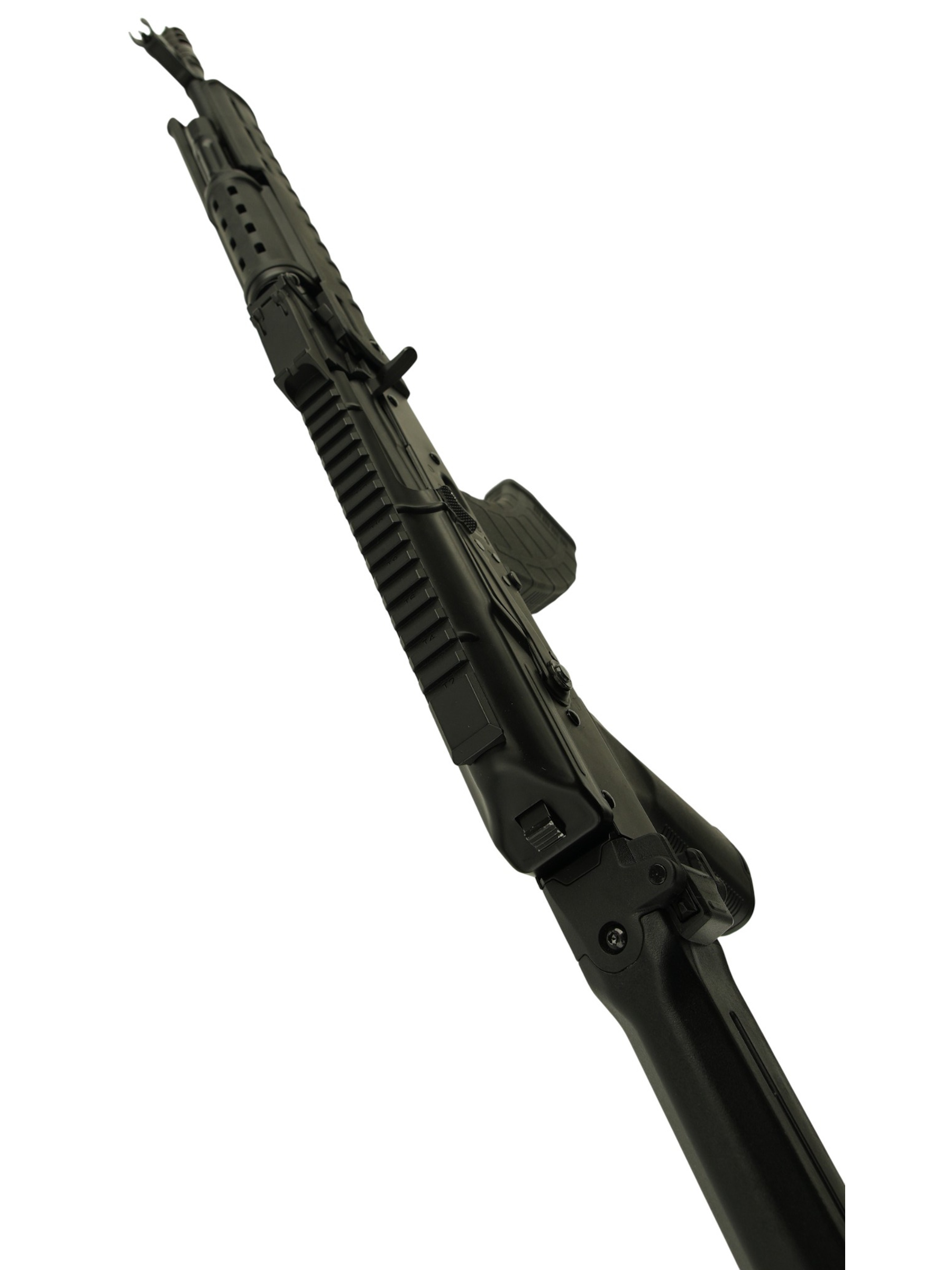 Автомат Cyma АК-103 Magpul Zhukov – это комбинация элементов из полимерного материала и алюминиевого сплава, за счет чего привод получается легким и при этом прочным, и долговечным. Основные механизмы металлические, из пластика здесь выполнены пистолетная рукоятка, цевье и приклад. Наличие планок на крышке ствольной коробки и M-LOK цевье с дополнительными направляющими планками позволяет установить не только оптику, но и обвес в виде ДЦУ, подствольного гранатомета или фонаря. Аналогично прототипу, имеются штатные прицельные приспособления в виде регулируемых целика и мушки.