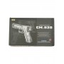 Наличие ниже ствола ris-планки позволяет применять с пистолетом дополнительный обвес. Изделие изготовлено из пластика с хорошей устойчивостью к ударам, гирбокс металлический. Цвет оружия песочный. Вес – 0,6 кг, длина 20 см. Комплектуется шариками, механическим магазином, аккумулятором с ЗУ, инструкцией.