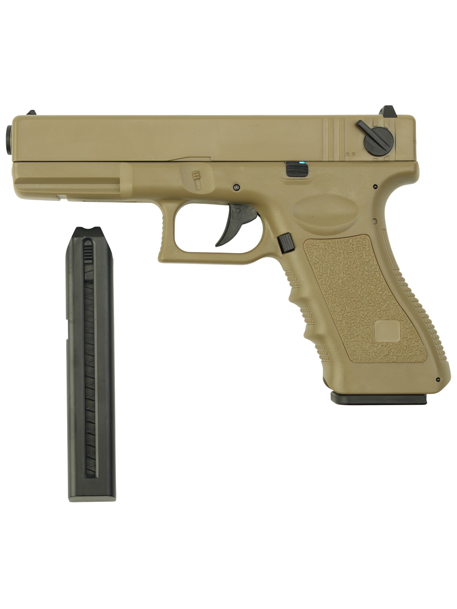 Описание страйкбольного пистолета Cyma Glock 18c Tan: