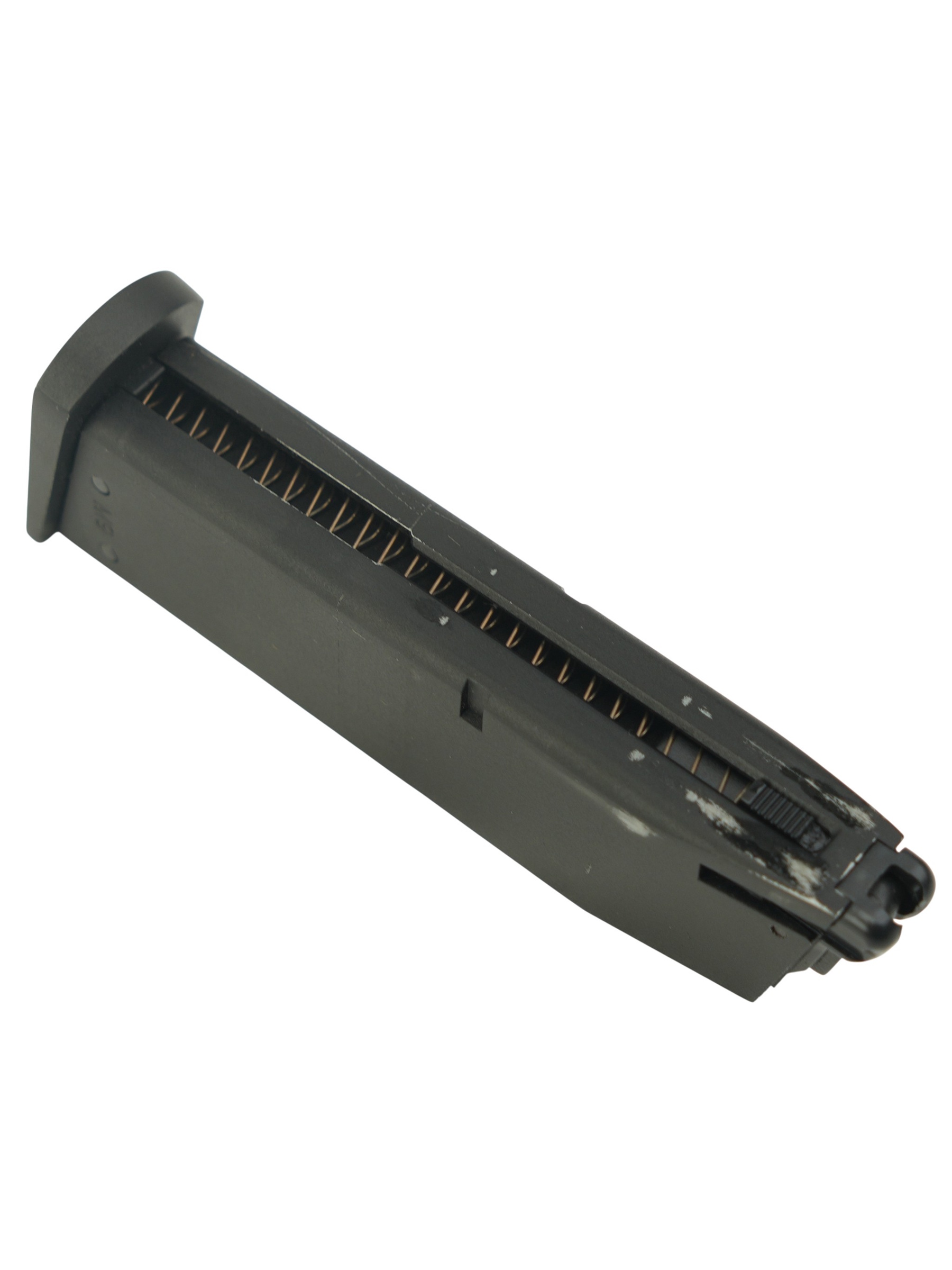 Пистолет оснащен магазином емкостью 25 шариков. Для стрельбы используются пластиковые шары 6 мм.