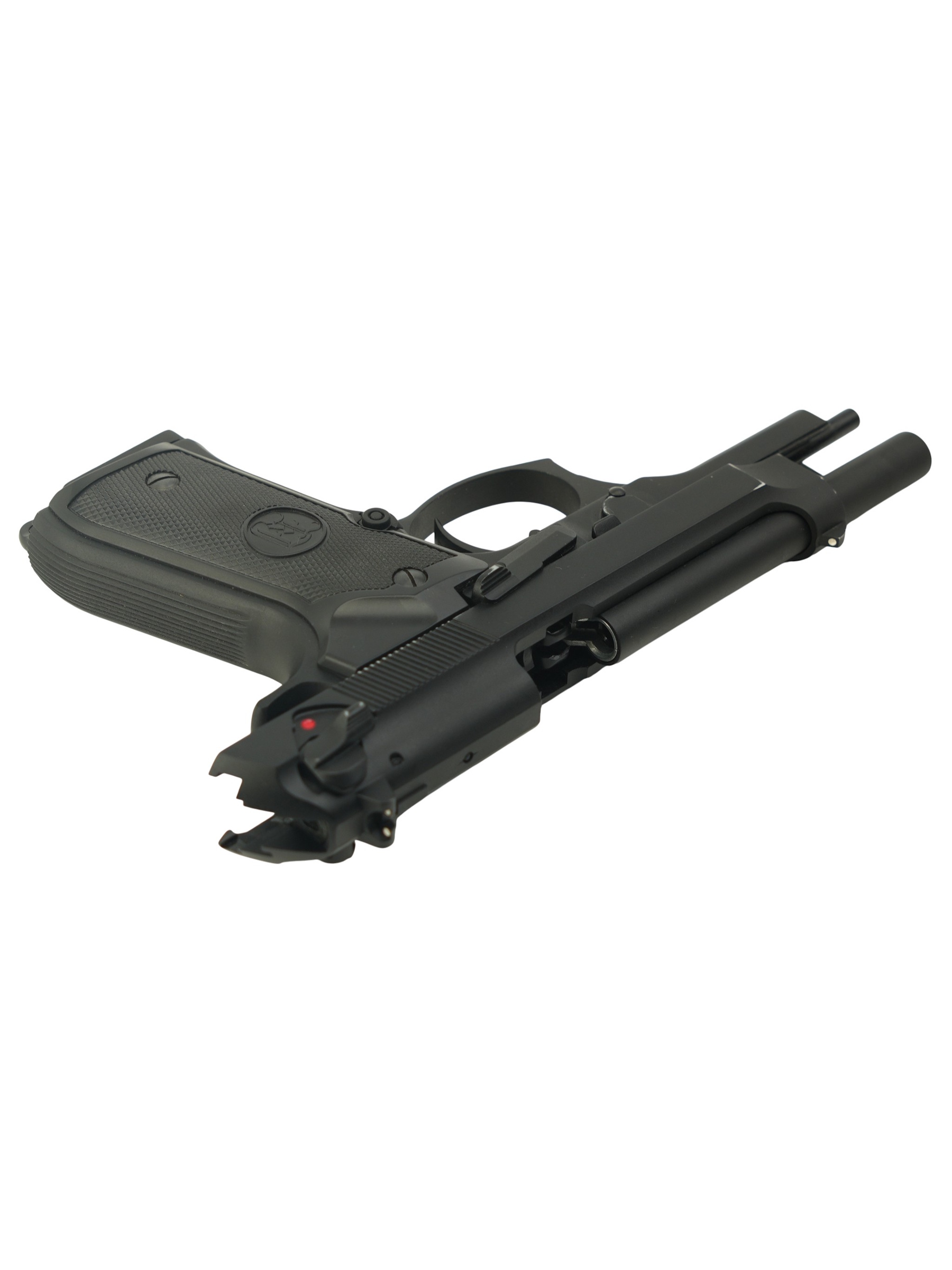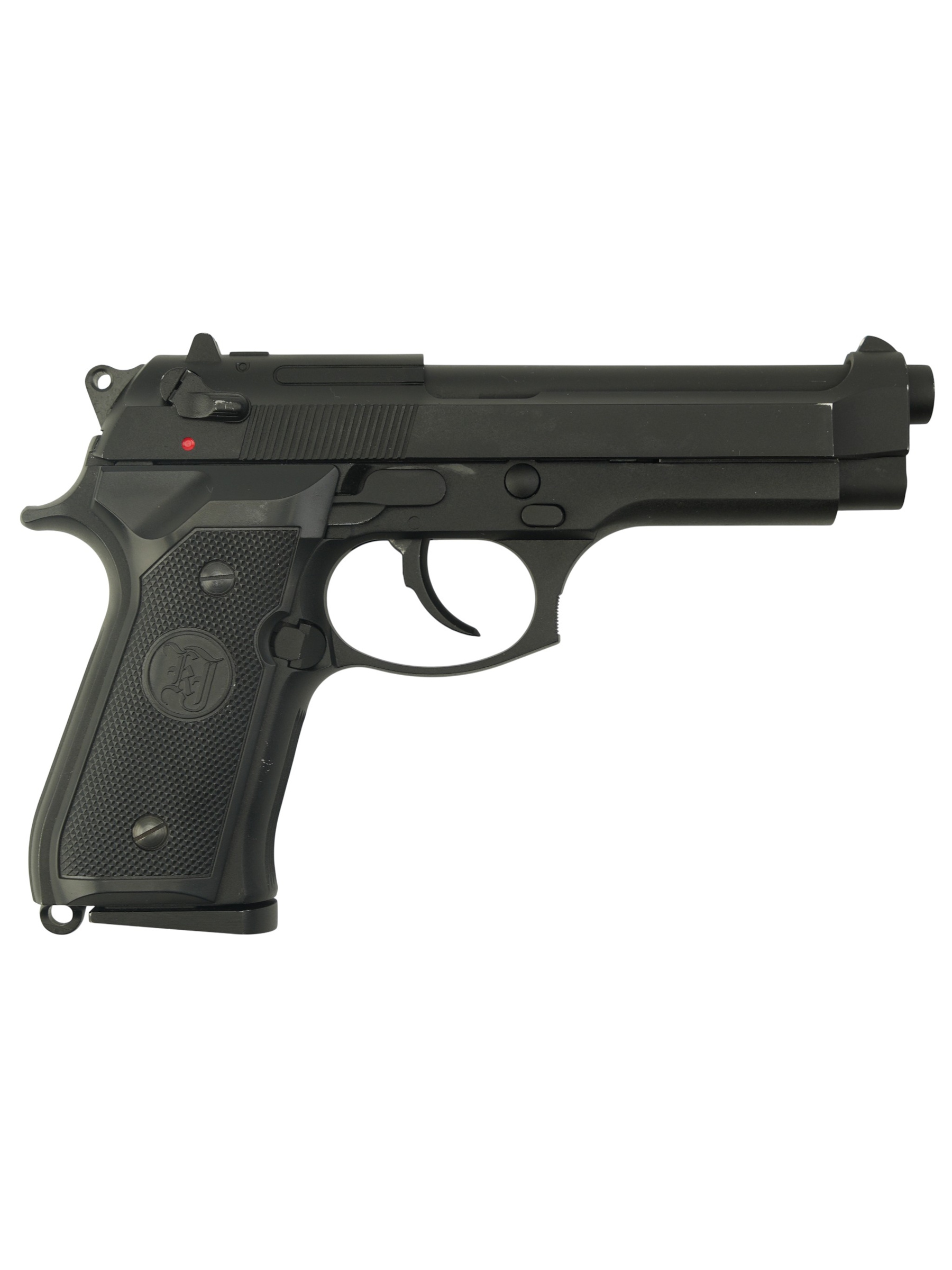 KJW Beretta M9 – это страйкбольный пистолет, работающий на Green Gas, калибра 6,0 мм (.236), обеспечивающий дульную энергию 1,7 Дж и скорость выстрела 100 м/с. Он повторяет элегантную и надежную реплику легендарной Beretta M92 / M9 от KJW – KJ Works.