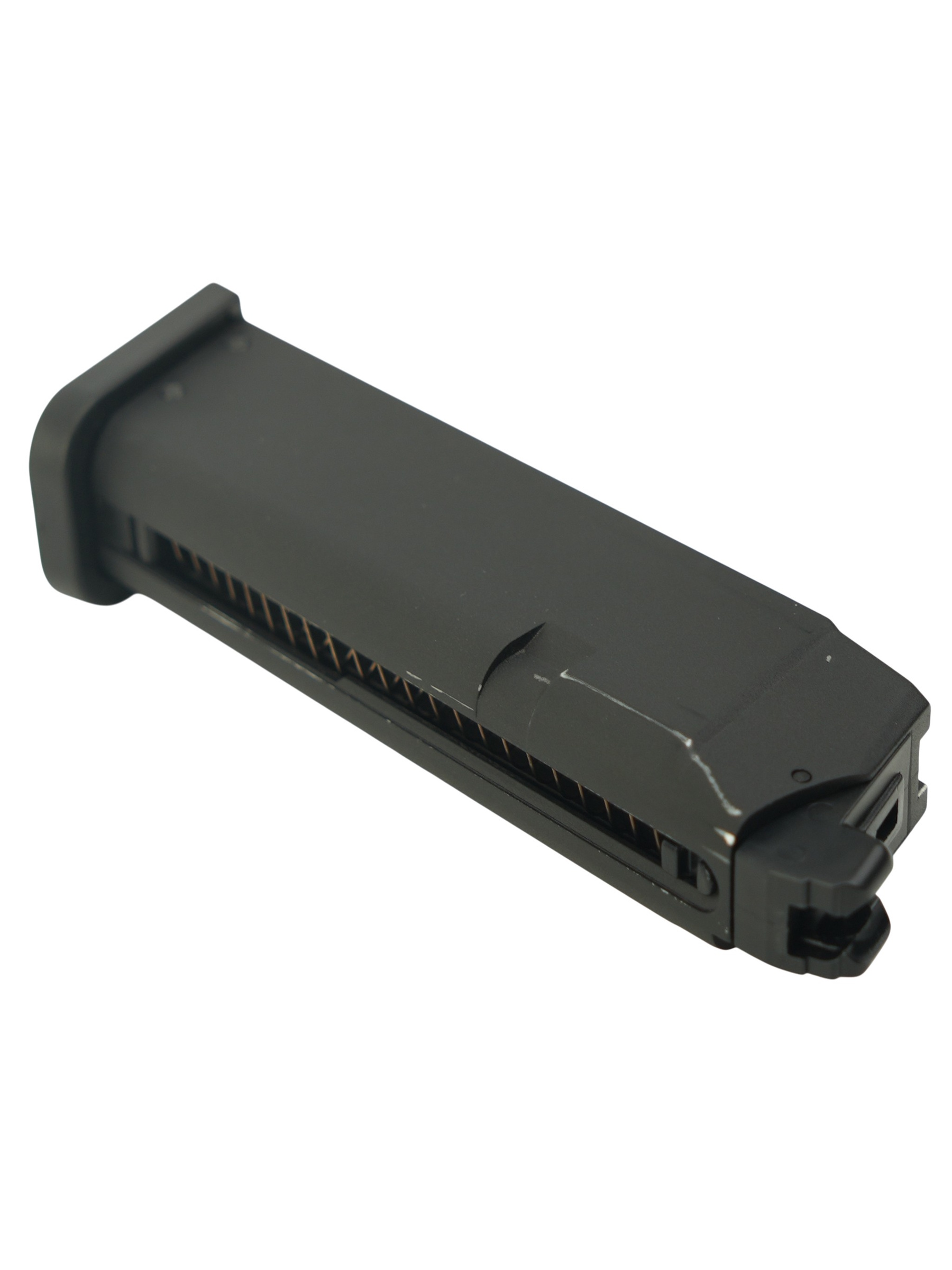 Пистолет оснащен магазином емкостью 22 шарика. Для стрельбы используются пластиковые шары 6 мм.