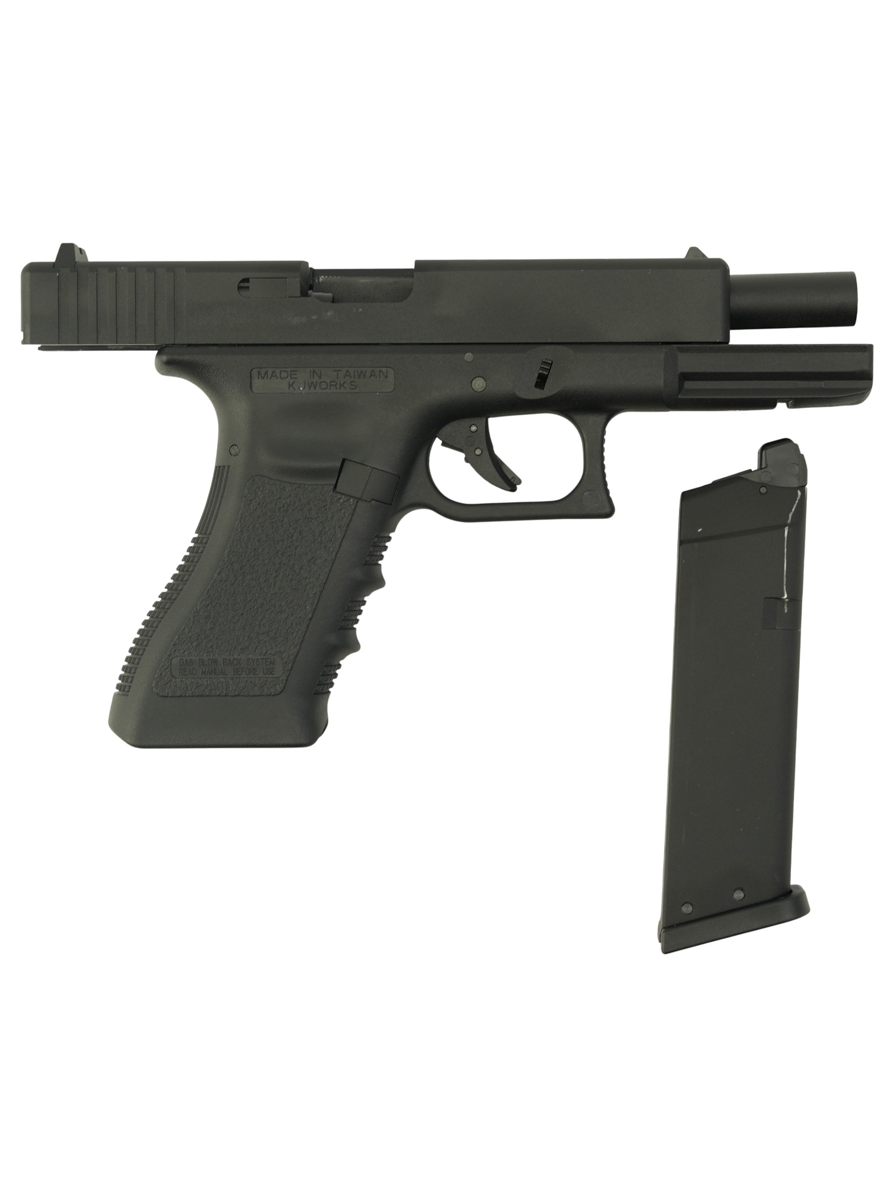 KJW KP-18 Glock G18 – это страйкбольный пистолет на Green Gas калибра 6,0 мм (.236), обеспечивающий дульную энергию до 1,7 Дж и скорость выстрела 90-100 м/с. Эта реалистичная реплика австрийского Glock 18 сочетает в себе металлическую конструкцию, реалистичный блоубэк, возможность ведения автоматического огня и компактные размеры.