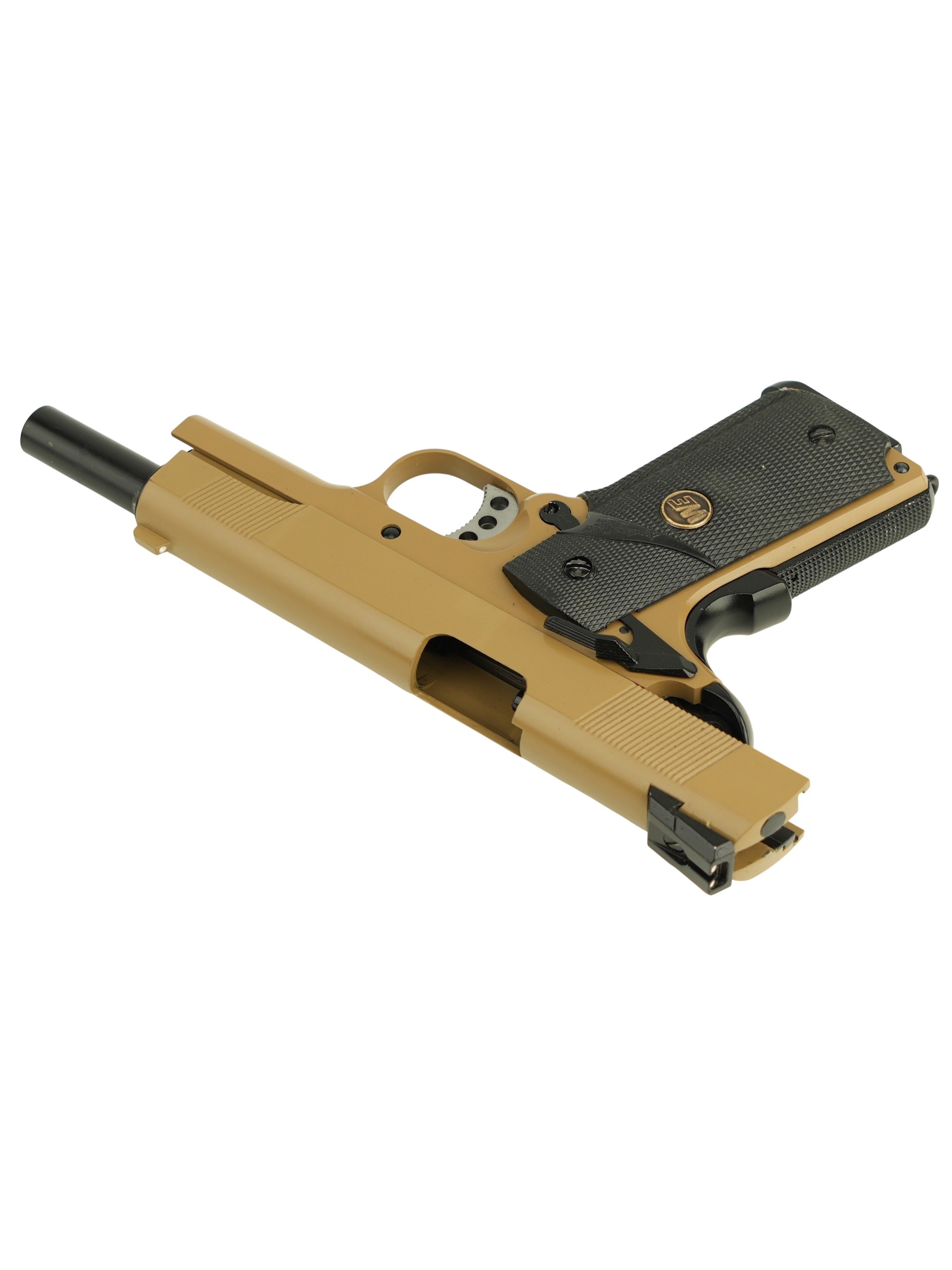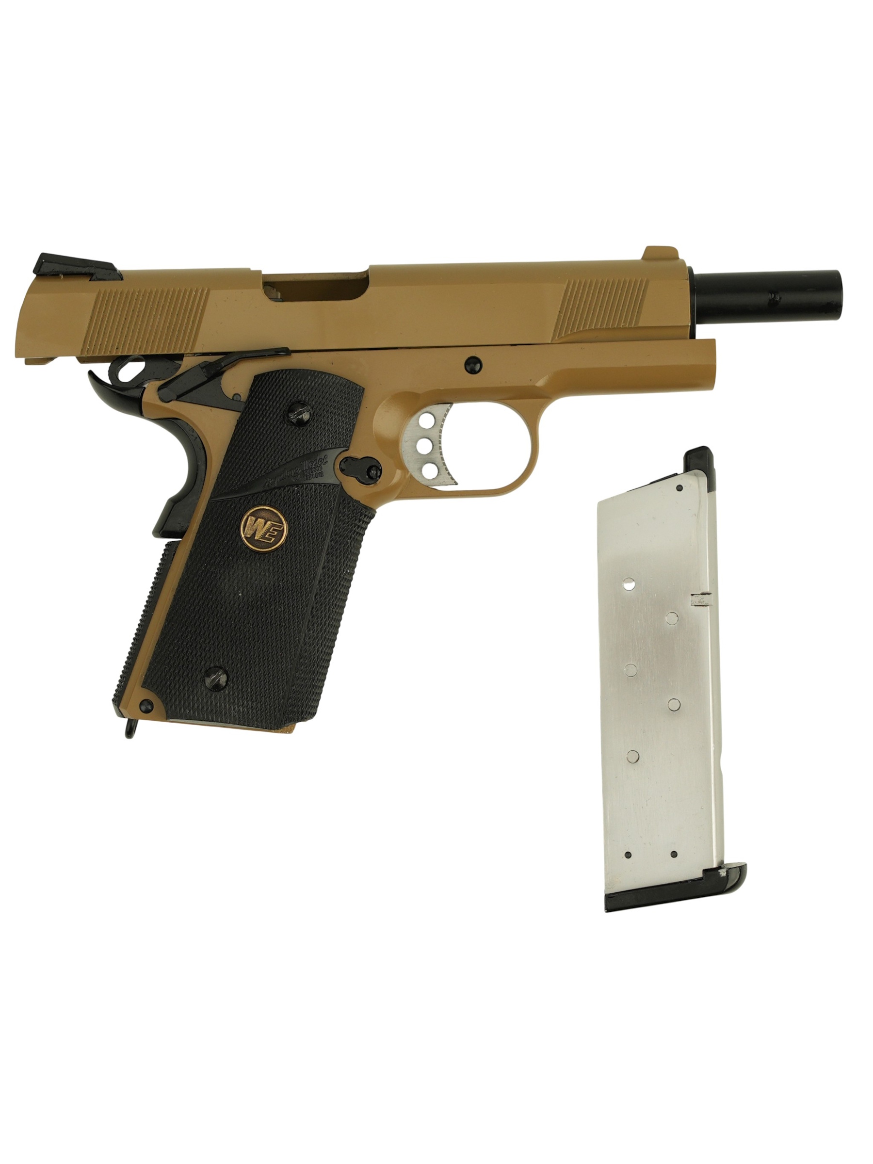 Описание страйкбольного пистолета WE Colt M1911A1 M.E.U. Rail Tan: