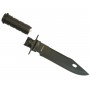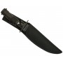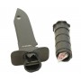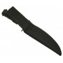 На лезвие нанесено антибликовое покрытие, а на обухе клинка присутствует серрейтор, позволяющий справиться с веревкой или подготовить мелкие сучья для костра. Для удобства упора есть гарда, а рукоятка из пластика имеет внутри специальную полость, в которой можно хранить самые необходимые для выживания предметы: чиркаш, спички, леску и прочее.
