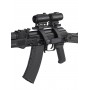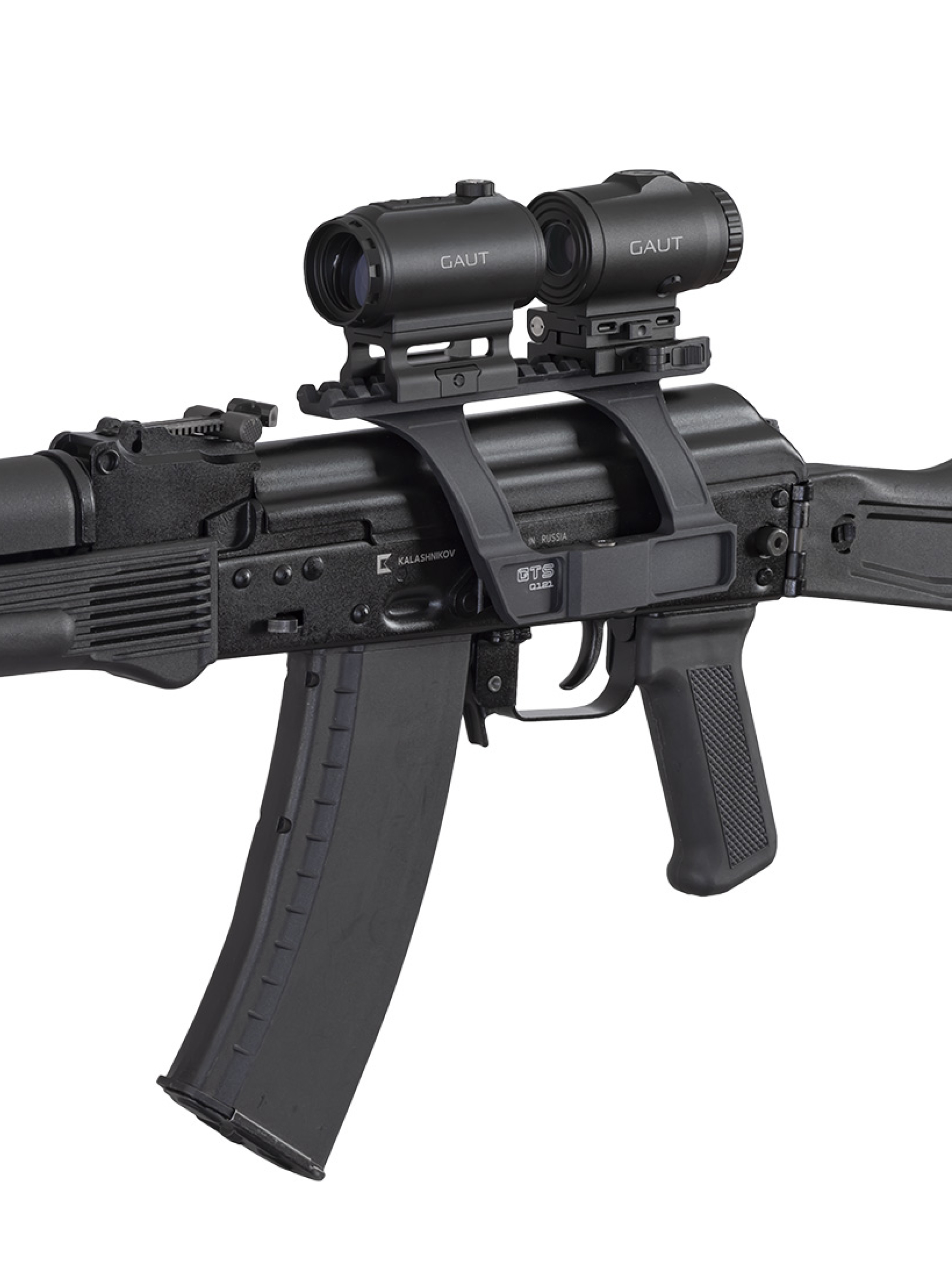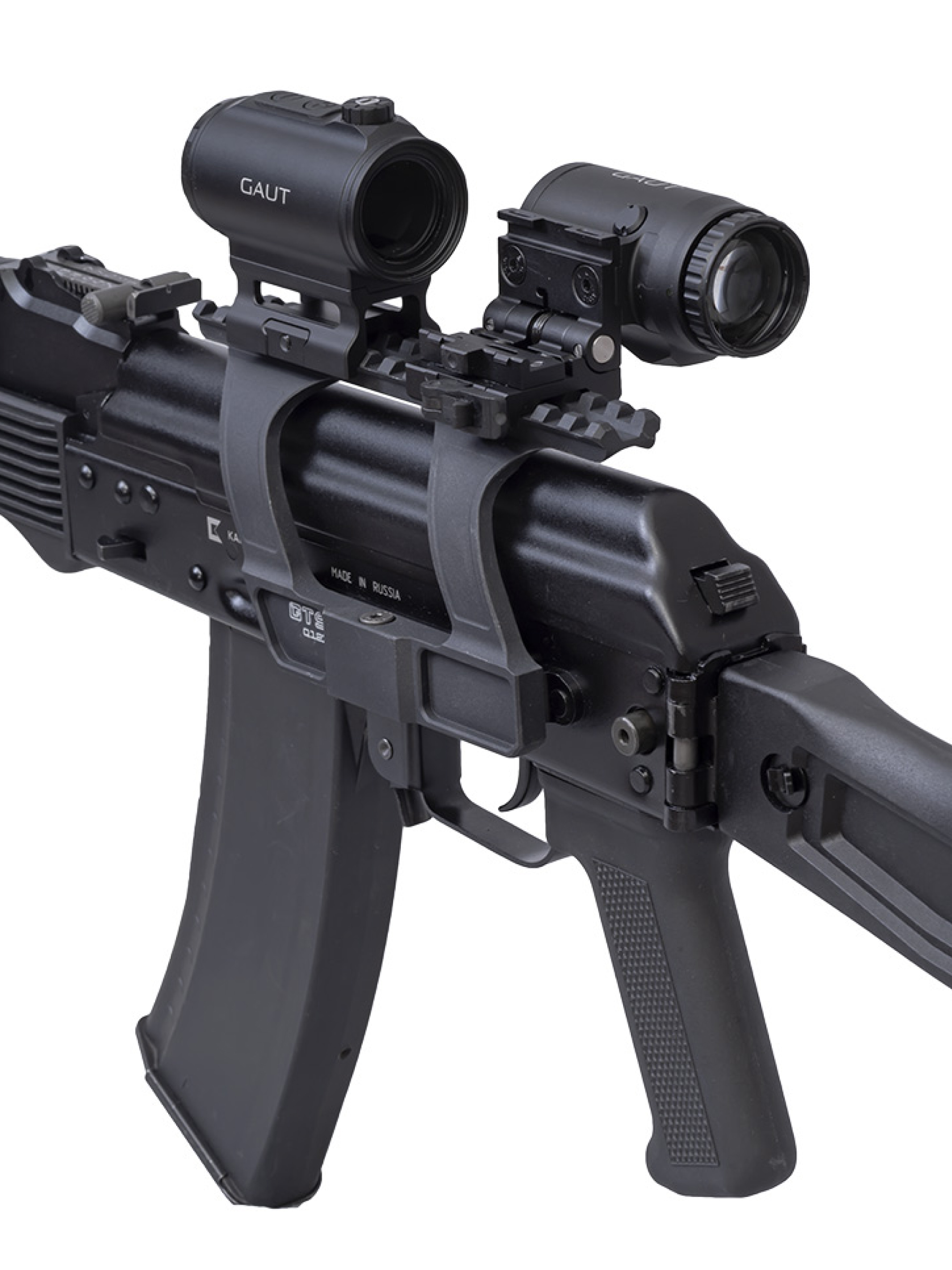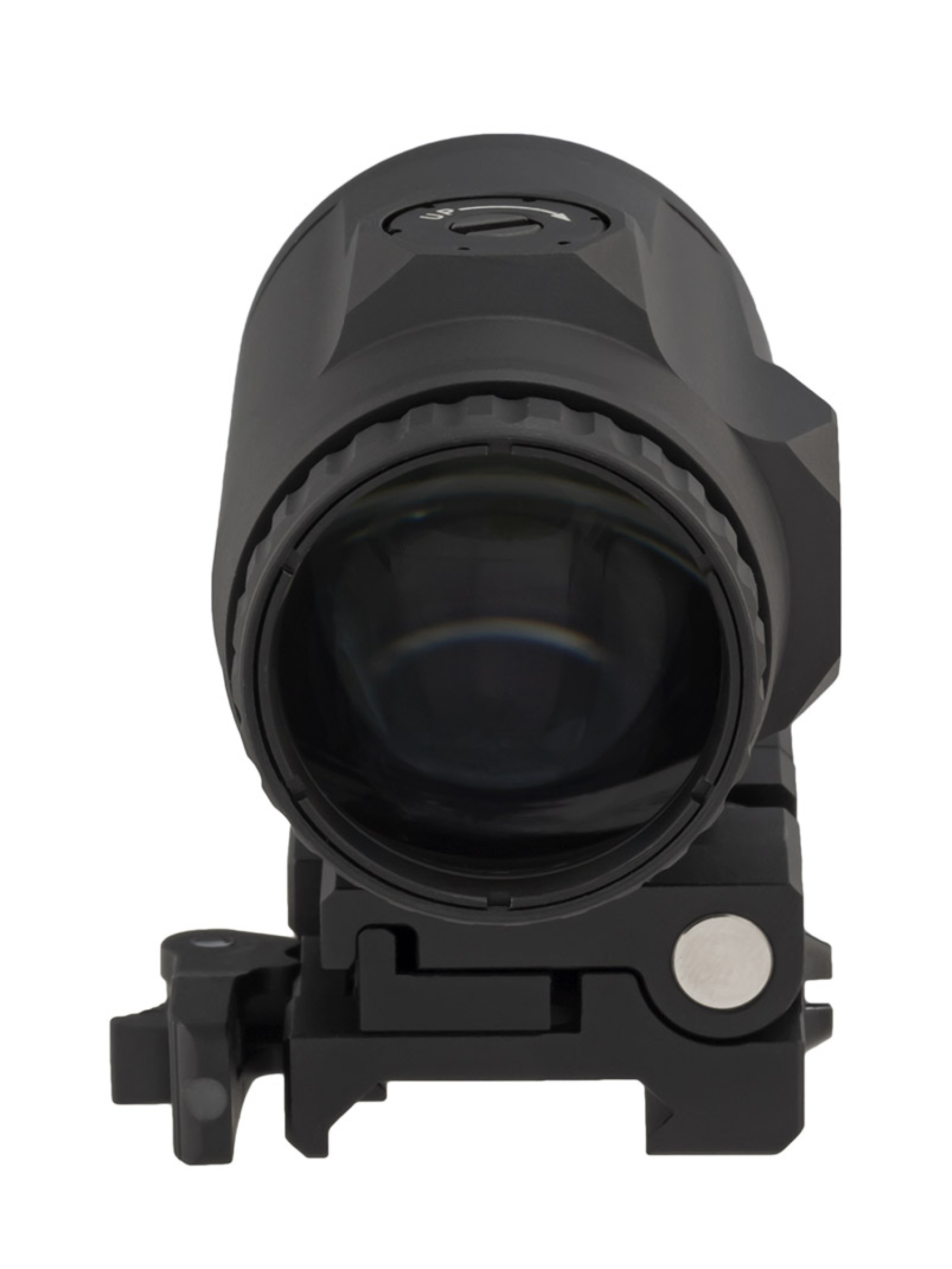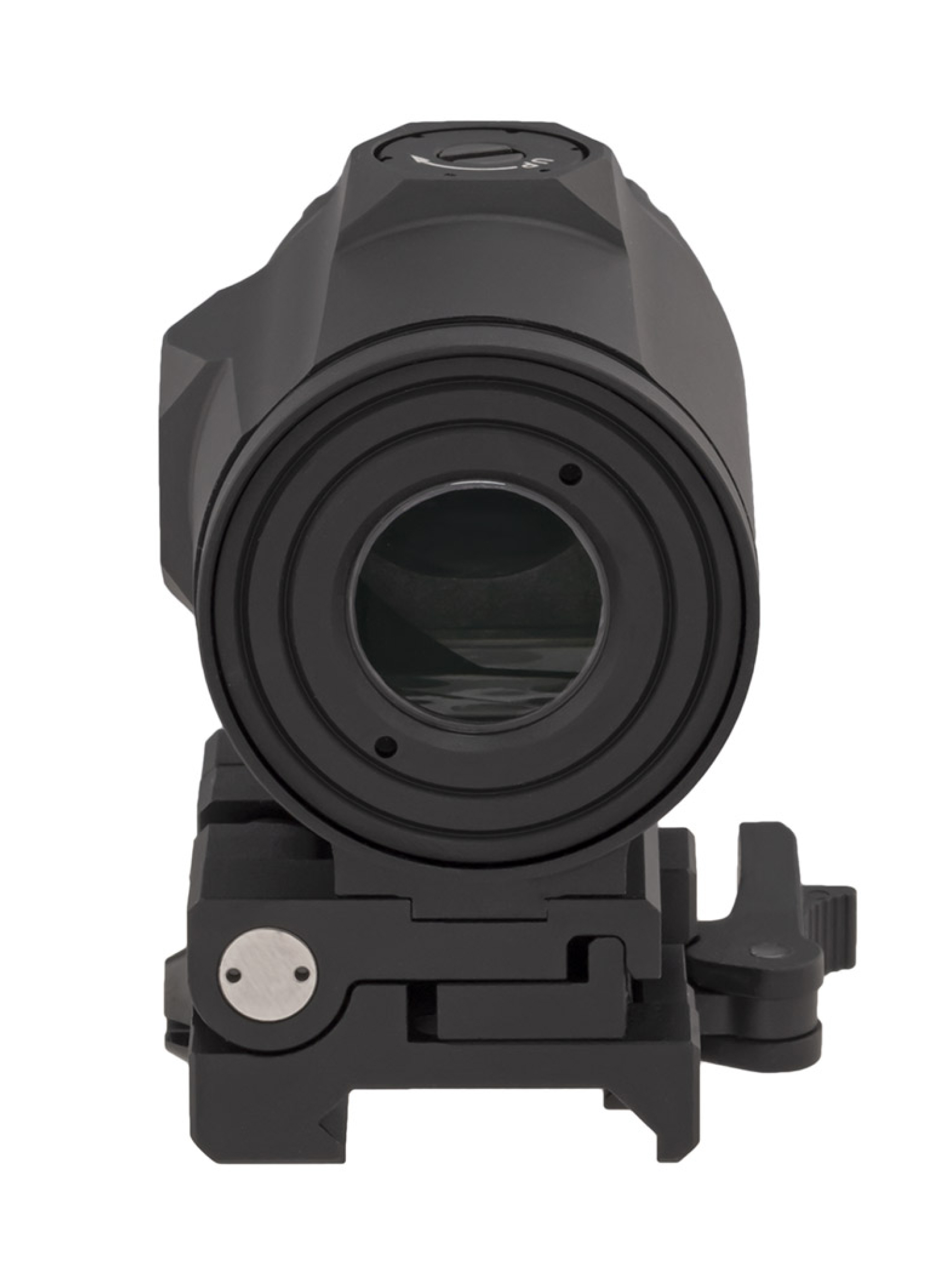 Увеличитель монтируется на стандартную планку Picatinny при помощи быстросъёмного кронштейна, входящего в комплект. Механизм откидывания в сторону даёт возможность мгновенно переключаться между режимами с увеличением и без него. Это обеспечивает максимальную гибкость и оперативность при выполнении стрелковых задач.