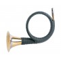 Витой сигнальный рожок из полированной латуни, оплетенный натуральной кожей предназначен для подзыва охотничьей собаки. Встроенный пищик освобождает от необходимости учиться правильно извлекать звук. Каждый охотничий рог "валторна" имеет индивидуальный тон. На горне есть эмблема в виде головы кабана.