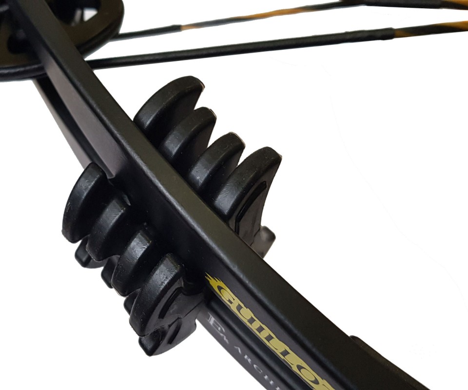 Комплект из двух виброгасителей устанавливается между планками плеч блочных арбалетов и луков. Служит для уменьшения шума и остаточной вибрации после выстрела.