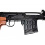 Оружие изготовлено из алюминиевого сплава и пластика. Цвет приклад с цевьем имитирует натуральное дерево. Вес спринговой винтовки – 2,7 кг, длина аналогичная боевому прототипу – 120 см. Комплекция: бункерный магазин, инструкция по эксплуатации.