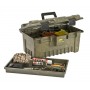Ящик Plano большого объема предназначен для транспортировки и хранения боеприпасов, охотничьих принадлежностей и аксессуаров к оружию. Он имеет прорезиненную эргономичную ручку с дополнительным отсеком на крышке, удобный безопасный замок, жесткую крышку, отделение для оружейных принадлежностей, лоток для мелких предметов.