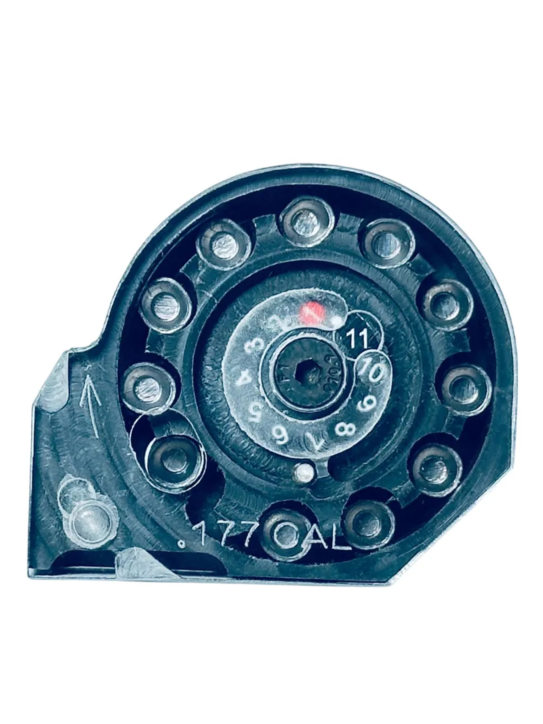 Автоматический запасной магазин барабанного типа формата Марадер для пневматических PCP-винтовок. Предназначен для заряжания пулями, калибра 4,5 мм, вместимость составляет 11 пуль.