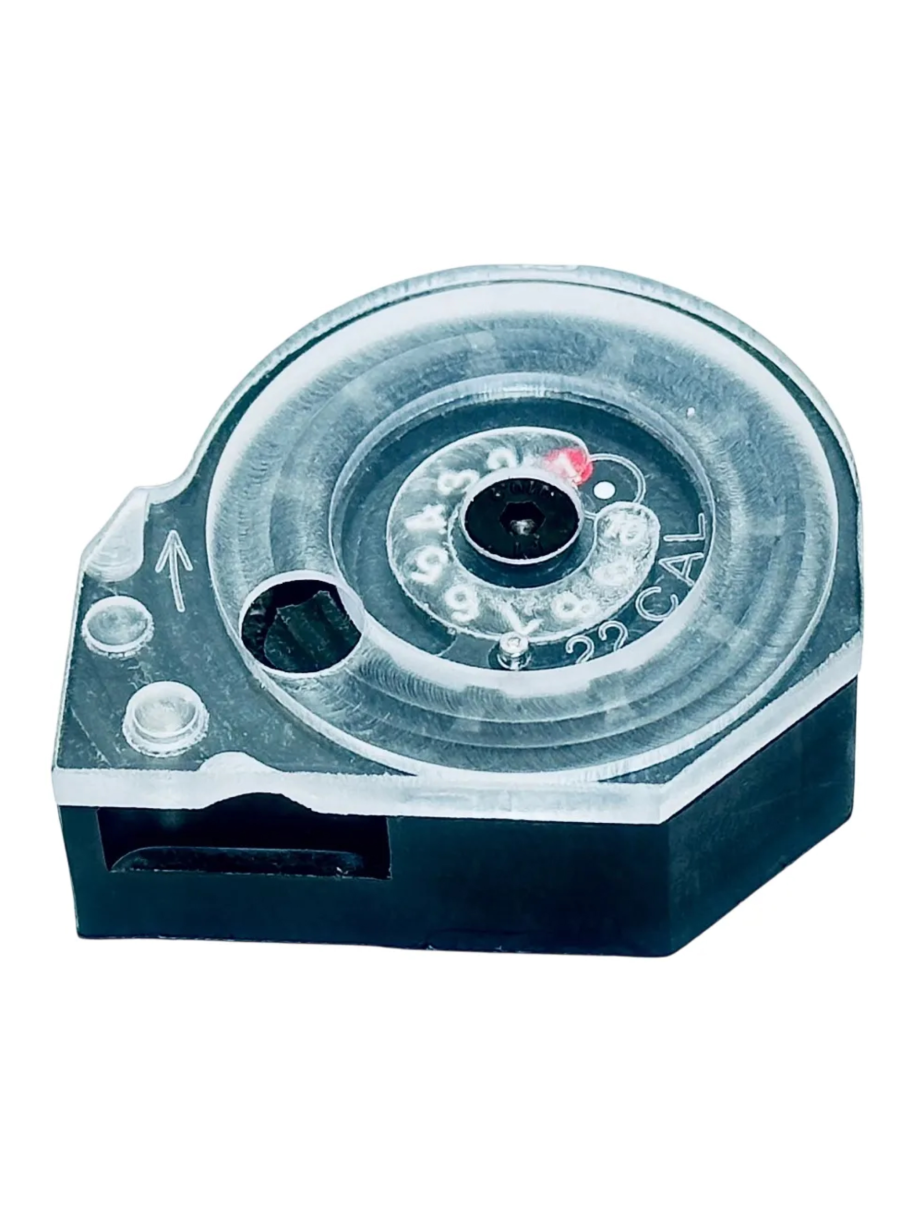 Автоматический запасной магазин барабанного типа формата Марадер для пневматических PCP-винтовок. Предназначен для заряжания пулями, калибра 5,5 мм, вместимость составляет 10 пуль. Проточенное стекло позволяет использовать длинные полнотелые пули.