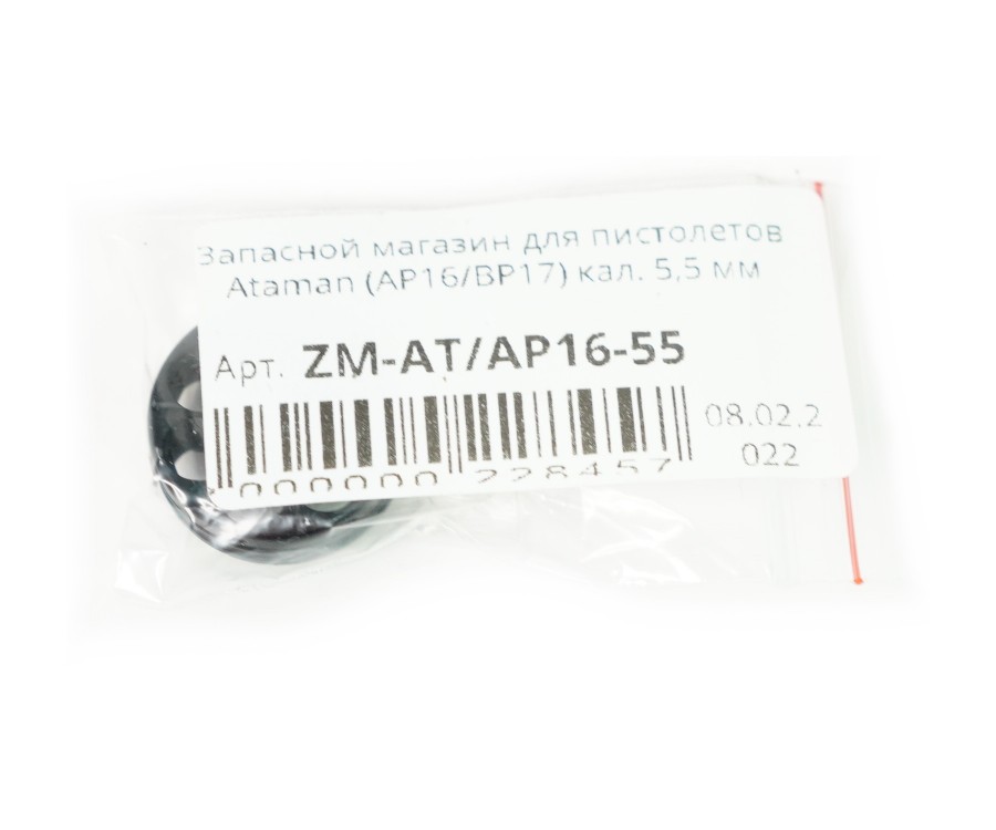 Запасной магазин барабанного типа для пневматических PCP-пистолетов Ataman AP16 / винтовок BP17 предназначен для заряжания пулями, калибра 5,5 мм, вместимость составляет 7 пуль.