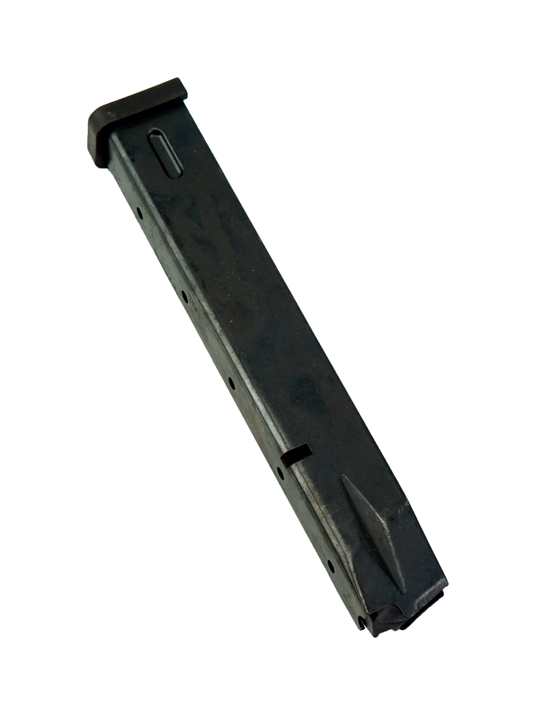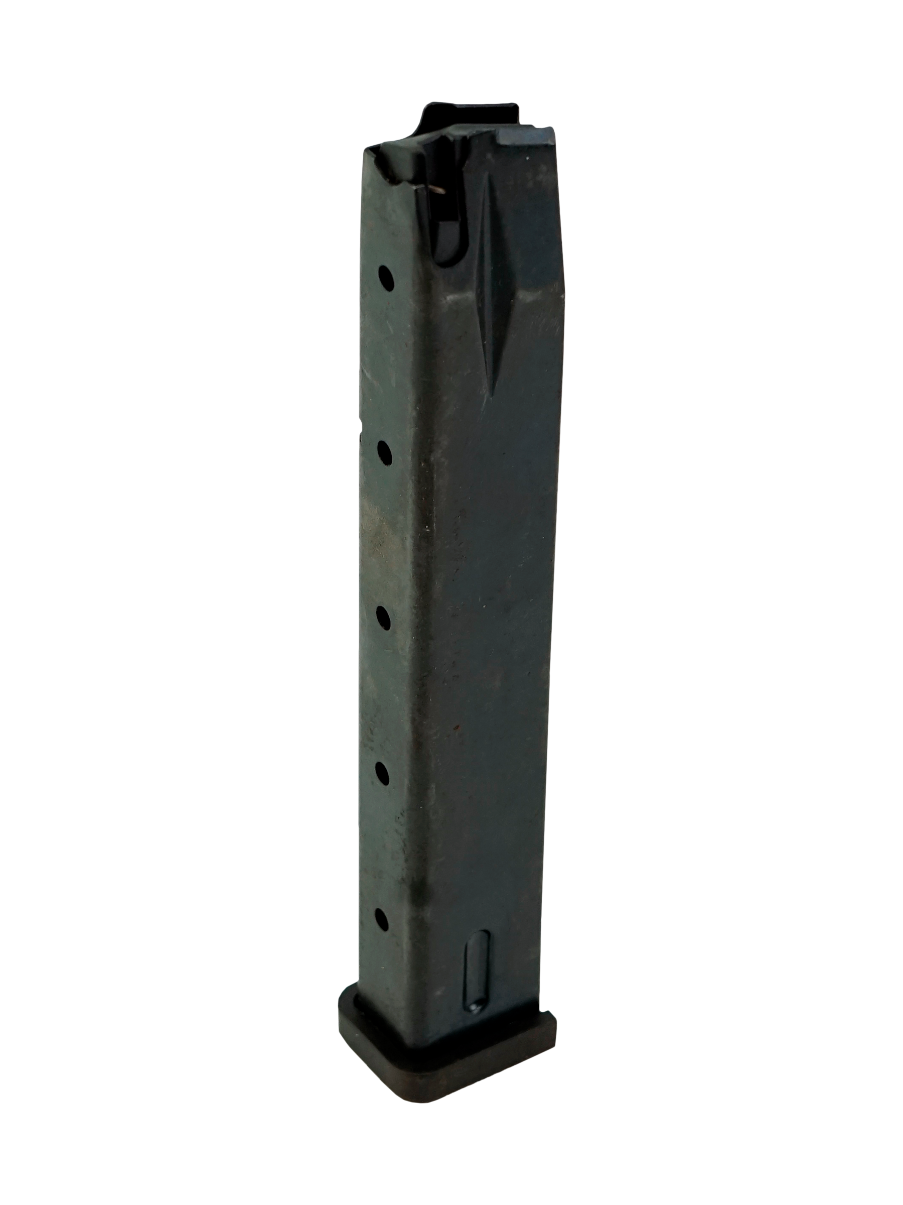 Запасной магазин удлиненный для охолощенного пистолета Retay MOD92 (Beretta) предназначен для заряжания светошумовыми патронами, калибра 9mm. Служит дополнительной обоймой, его вместимость составляет 25 патронов.