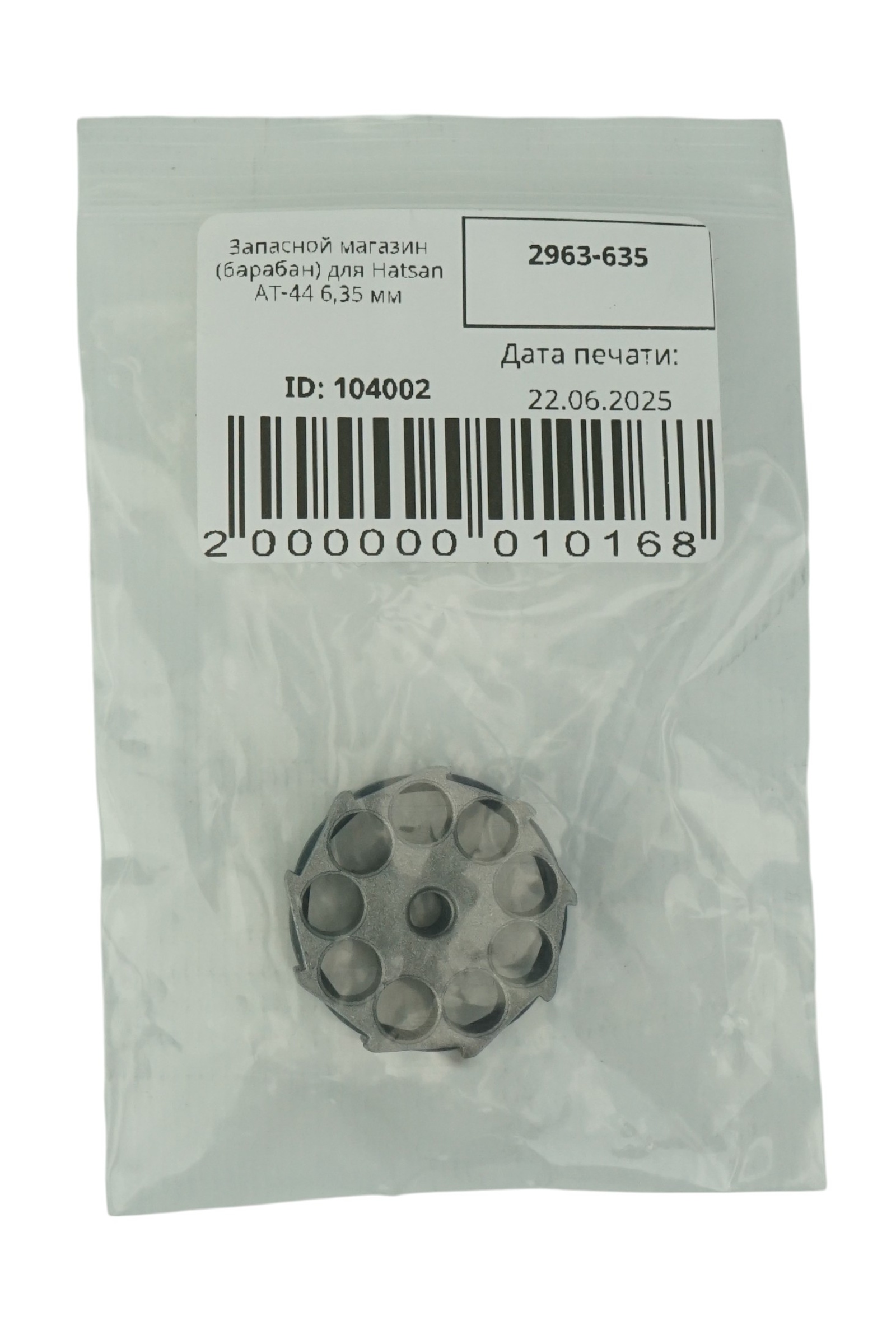 Запасной магазин для пневматической винтовки PCP Hatsan AT-44. Предназначен для заряжания пулями для пневматики, калибра 6.35 мм и служит дополнительной обоймой для винтовки с предварительной накачкой Hatsan AT-44.
