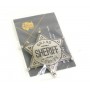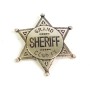Копия шестиконечной звезды шерифа из металла, с булавкой для крепления на одежду. «Шериф» - сокращение от слова "shirereeve", возникшего в средневековой Англии. Так называли человека, ответственного за отправление правосудия в графстве.