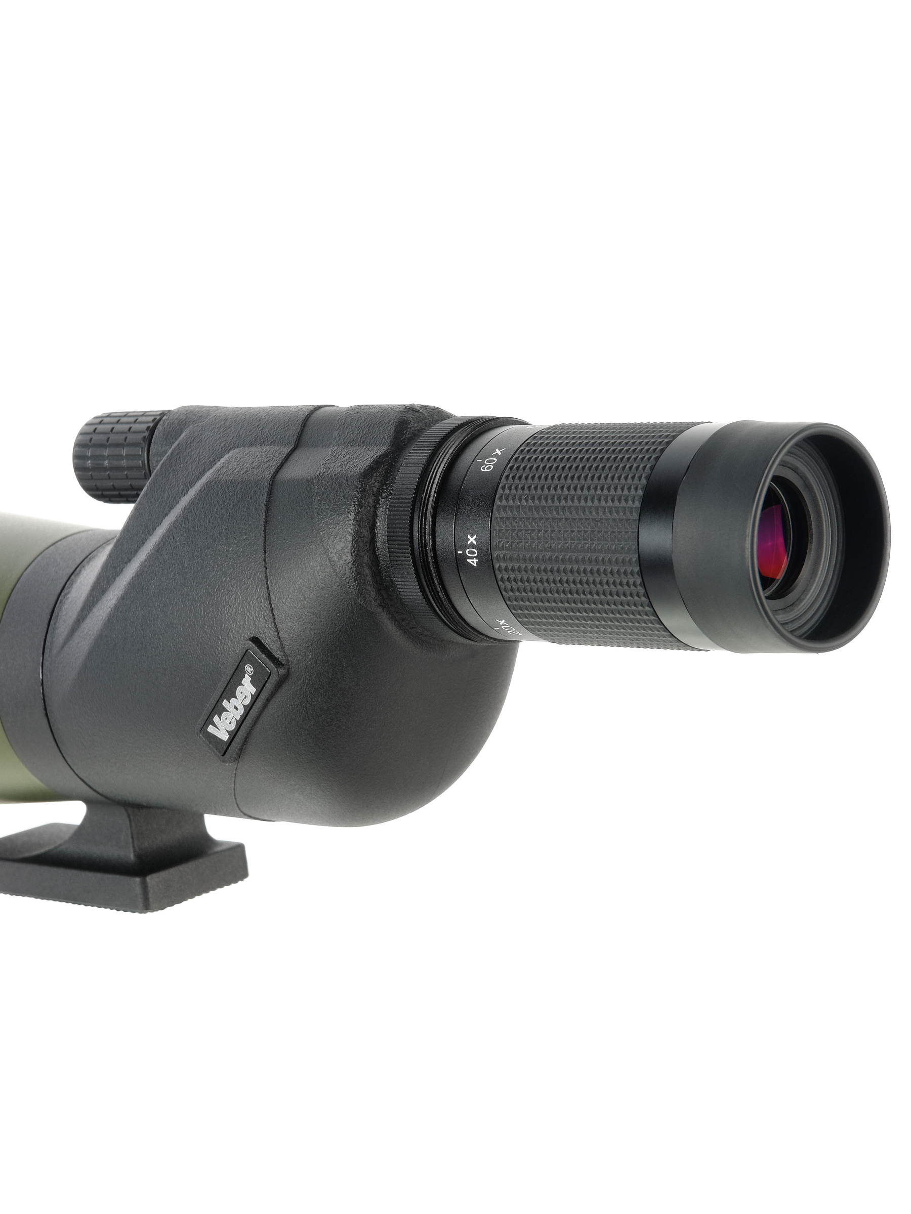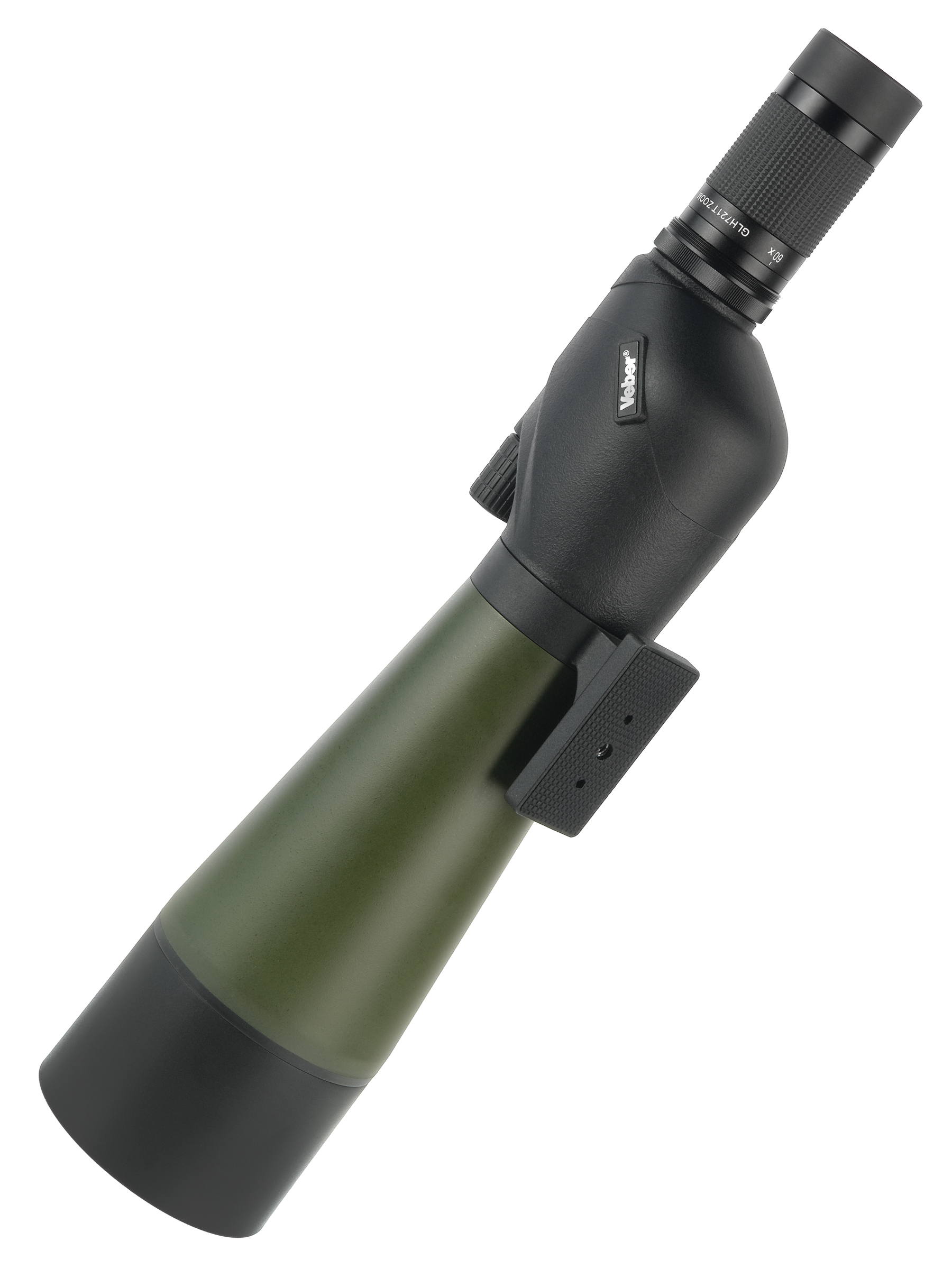 Зрительная труба с герметичным обрезиненным корпусом и габаритами 435х100х170 мм имеет оптимальный вес 1,55 кг. На окулярной части зрительной трубы расположен барабанчик фокусировки с удобным управлением указательным пальцем, а также колесо зуммирования.