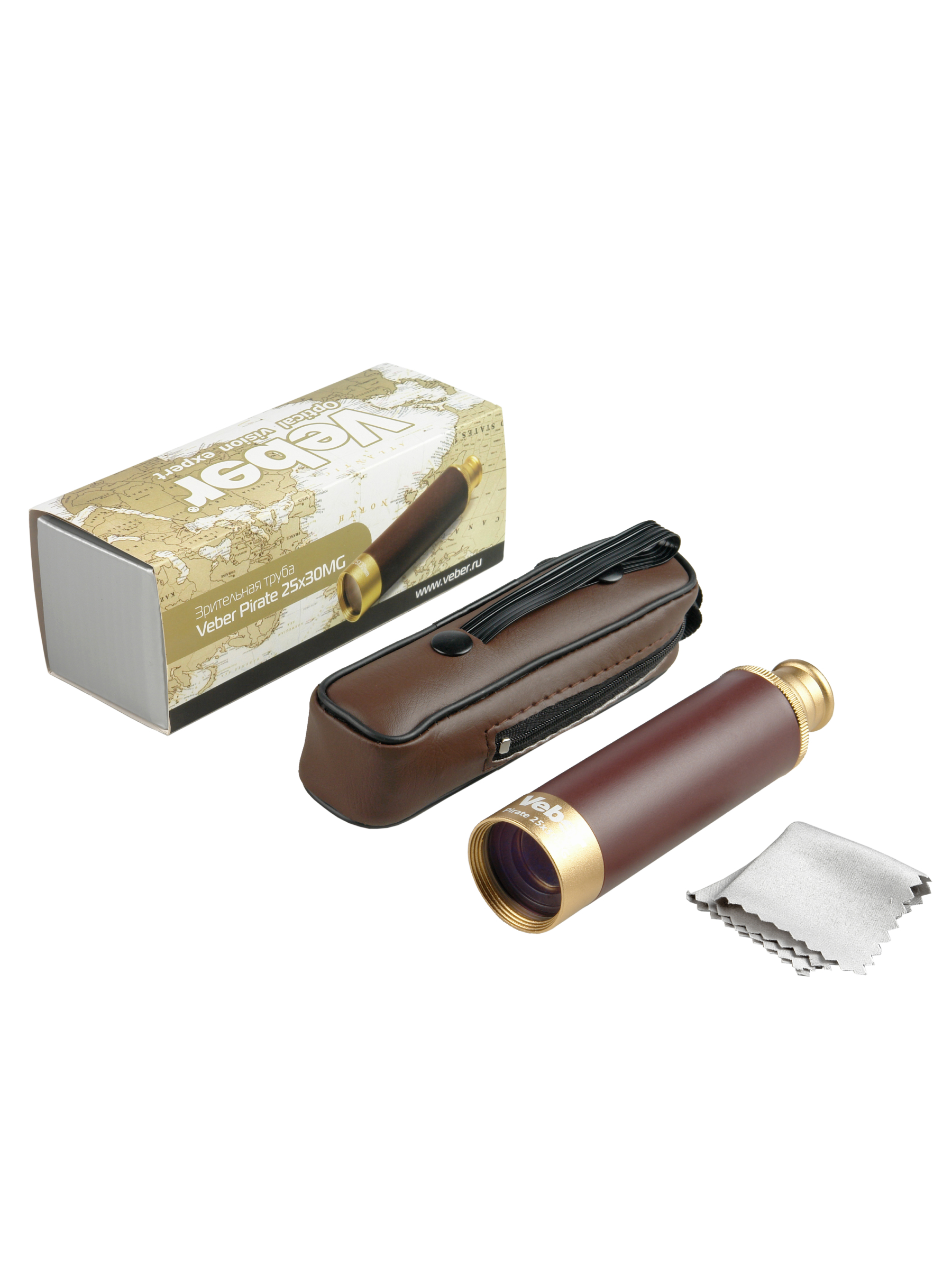Зрительная труба Veber Pirate 25x30MG – классическая подзорная раздвижная труба для любительских наблюдений с увеличением 25х и диаметром объектива 30 мм.